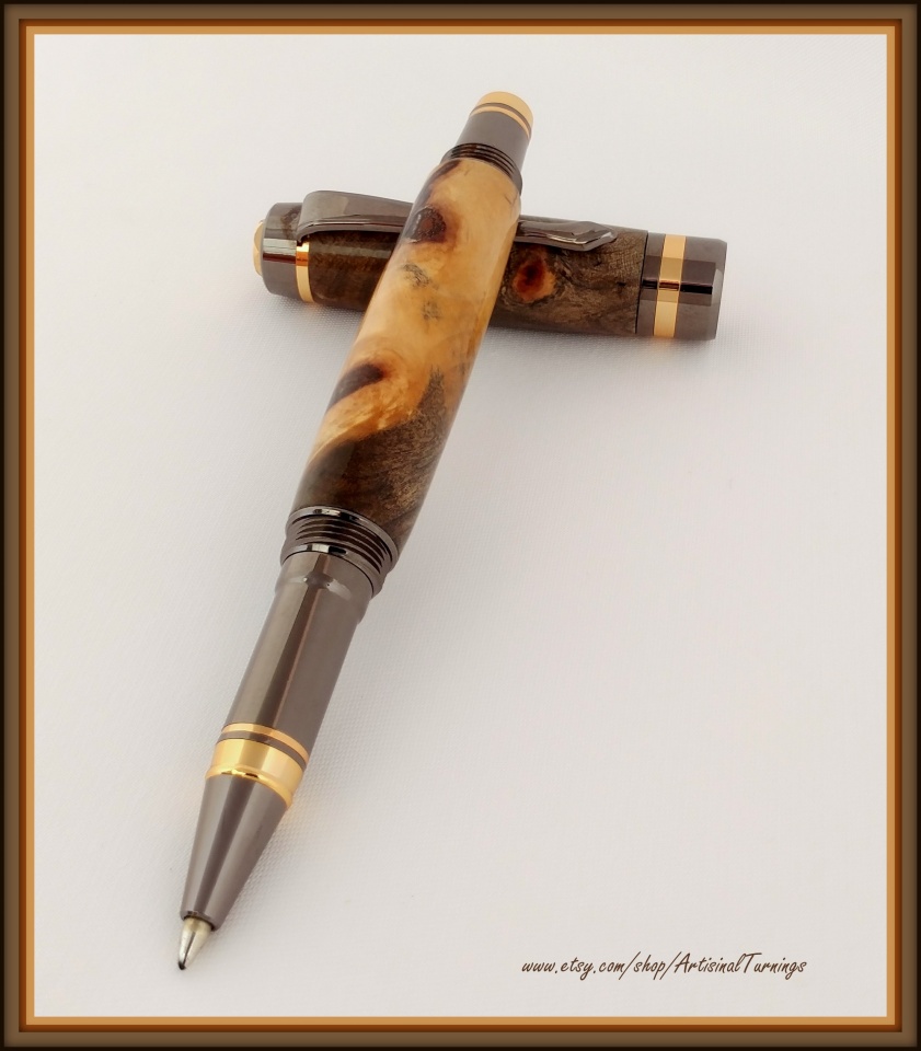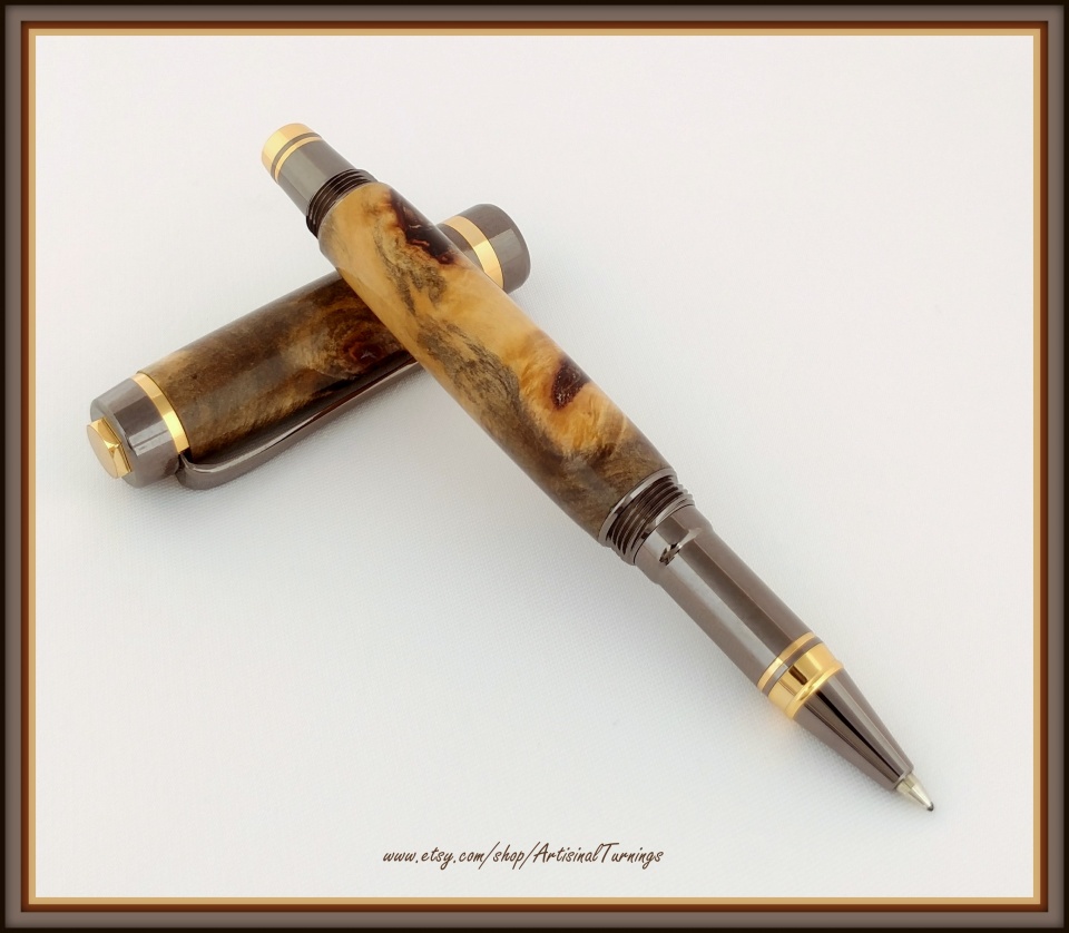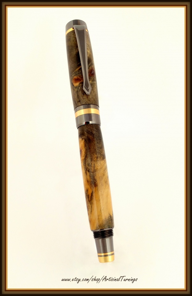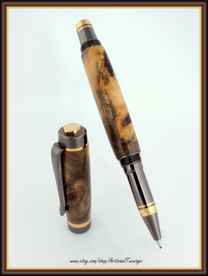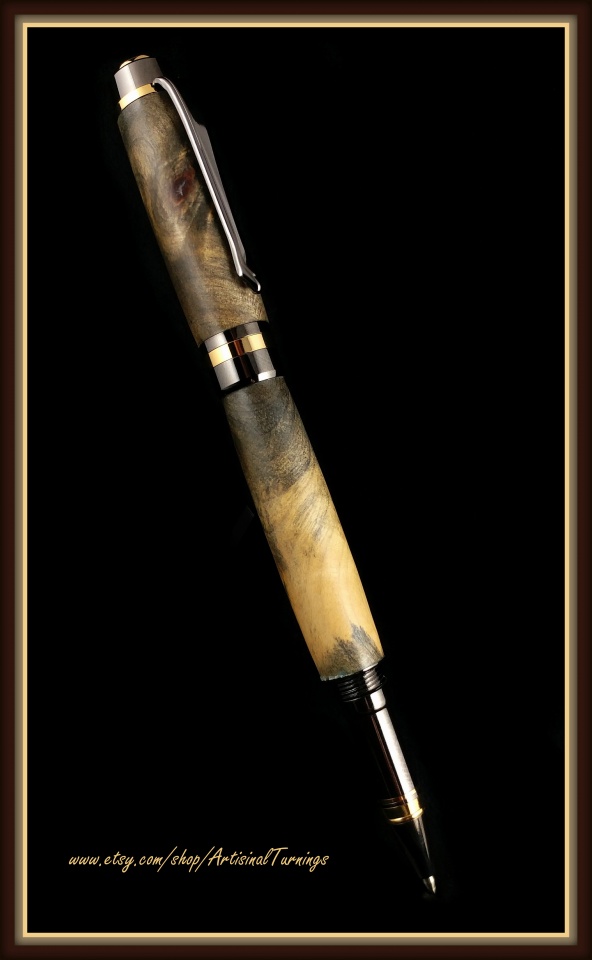 I wasn't happy with the CA finish on this Classic Elite rollerball, so I reapplied 4 layers of thin CA, sanded with a Fine Mirlon pad then applied a light coat of Stick Fast CA Polish Glossy. The first photo is the original finish and it's hard to see that the new finish is nice and glossy, but it is. Thanks for looking!
