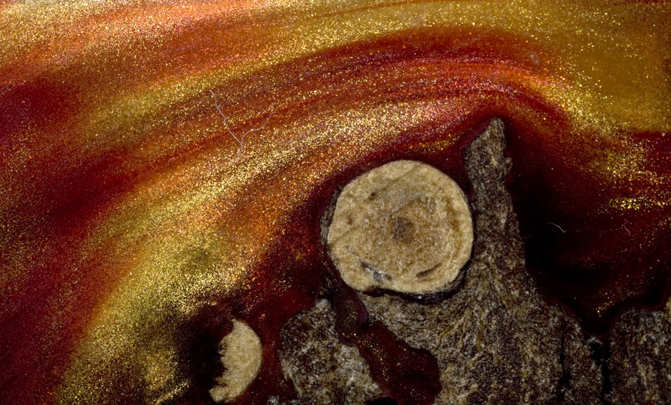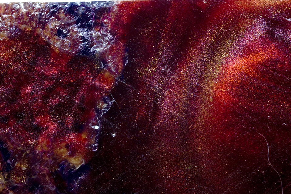 I also see something in the purple/black but can't quite put my finger on it just yet. As to the red/gold I think some thicker blank would be good for it. The purple/black likely needs something thin to really shine.
