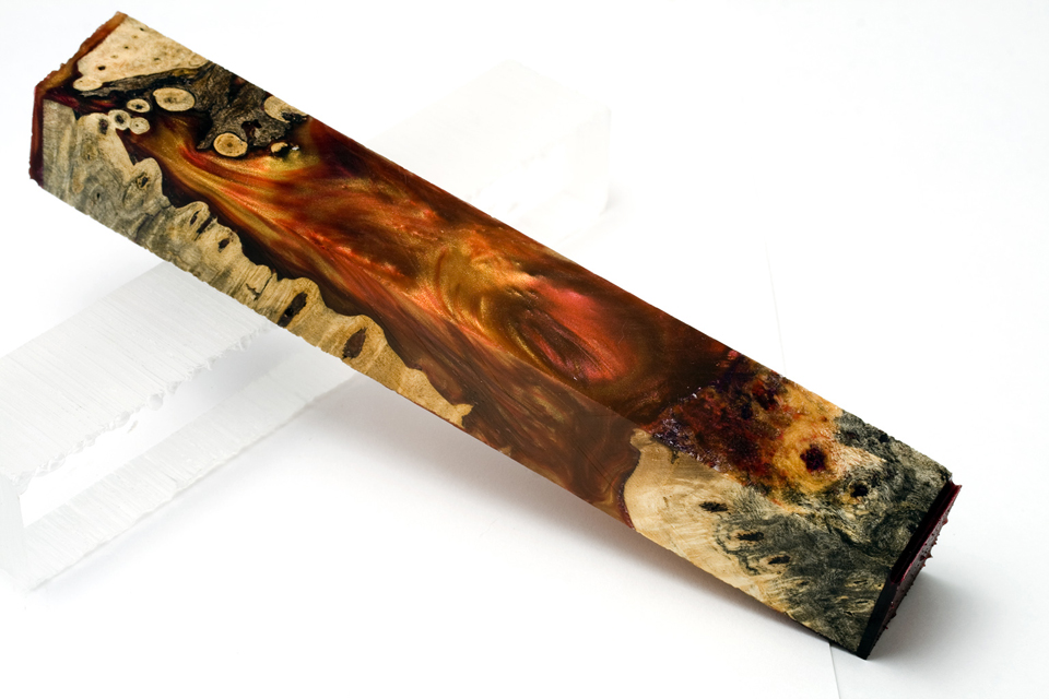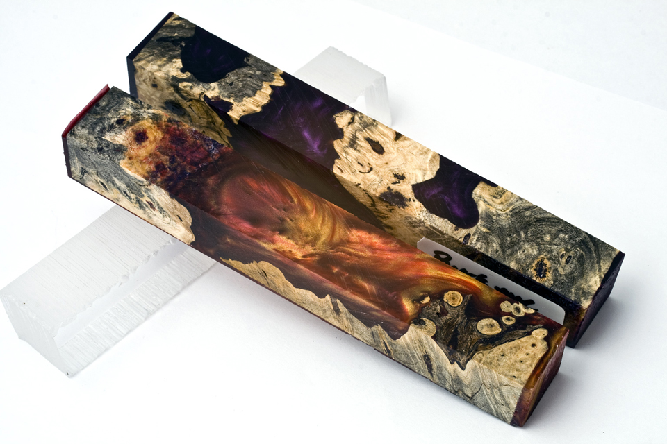 Interesting, here we have 2 blanks Exotic Blanks :: Guest Artist's Blanks :: Reincarnated Wood by Wayne These two happen to be red/gold and purple/black with Buckeye burl.