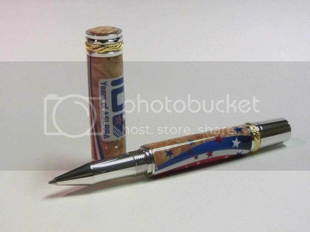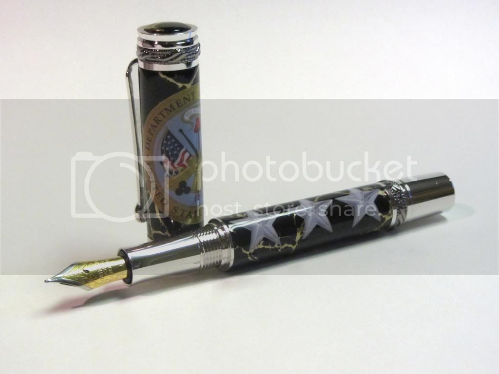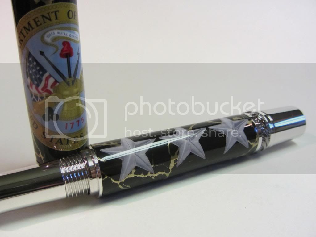 Got commissioned to do a few pens for the president of the ASLRRA, who also happens to be a retired 3 star general. These are the first pens I've attempted to the decals on, and I gotta say I'm pretty happy with the results. The pics are pretty horrible though as I was in a hurry to get these out the door.