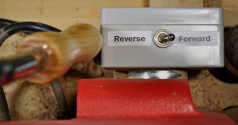 My metal lathe has a reverse switch but also has a lockout in the circuit so the lathe has to be stopped before it will reverse. Bad things will happen if you bump the switch wile turning at speed. Might be worth a covered switch so you have to do it on purpose.