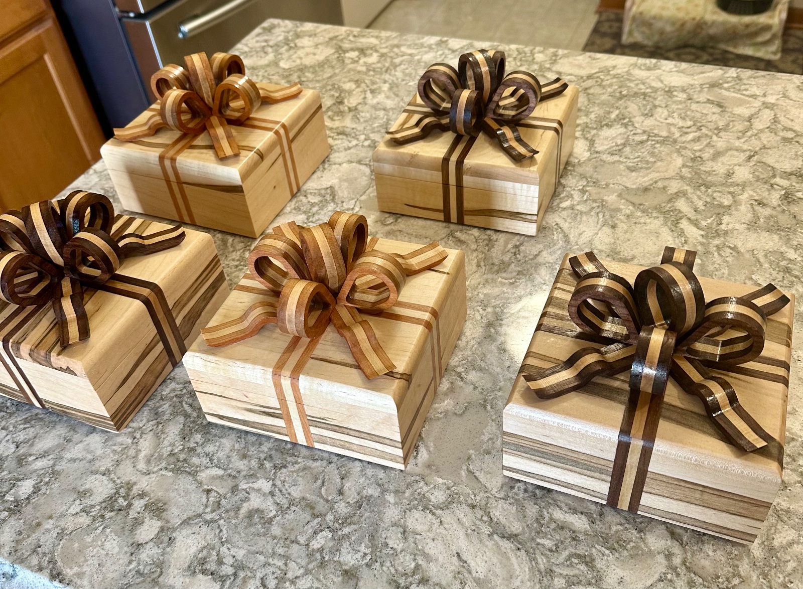 Woodchipper Member Joined Mar 15, 2017 Messages 7,128 Location Cleveland, TN Tuesday at 3:54 PM #2 Elegant boxes. The ribbons tell me that you spent some time to make them.