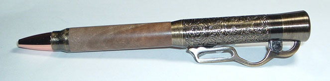 D Dale Allen Member Joined Oct 27, 2012 Messages 1,384 Location Massillon, OH Aug 8, 2015 #1 Been wanting to make one of these. Nice pen an great quality. Decided on a matte finish so as not to detract from the hardware. I also thought it was interesting that the casting is much more defined than some others. Attachments rifle_pen.jpg 35.1 KB · Views: 200 compare.jpg 70.9 KB · Views: 156