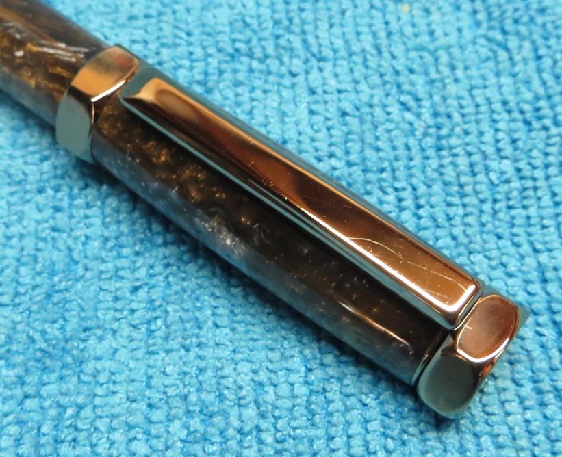 I was careful to line up the facets in the finial and center band, but forgot about the clip. So I pushed the finial out enough to turn the clip, and got it better, but somehow the facets are off now. I might fix it later, but I'll definitely be more careful on the next one.