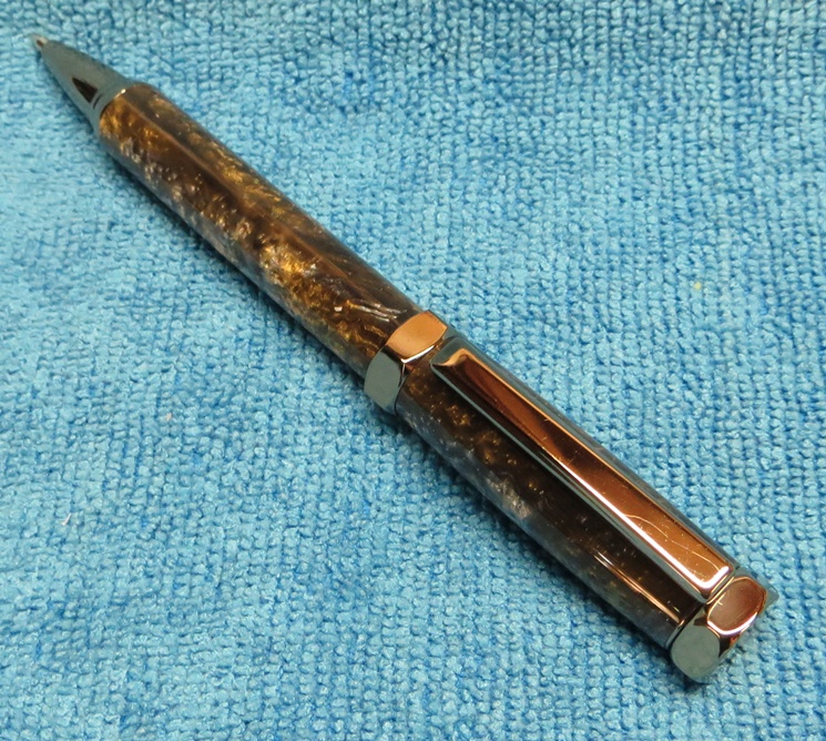 This is my first Rinehart ballpoint kit, in gunmetal. The blank is a Rhino called Diggin' For Gold. I didn't expect it to have so much silver in it, but I really like it!