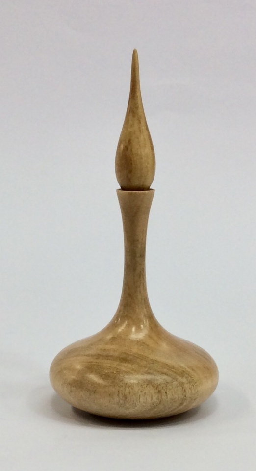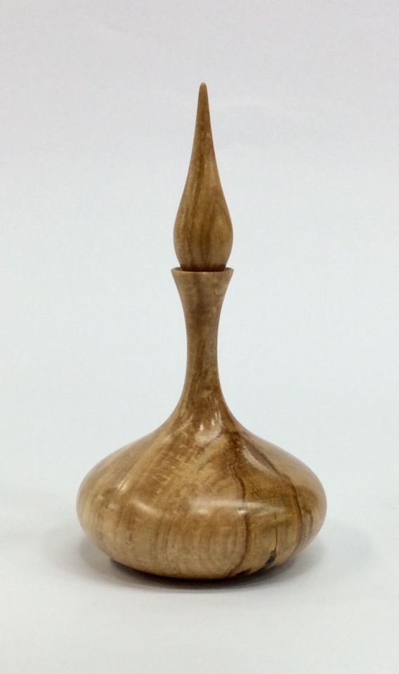 I turned a couple of maple ring holders in a classic Bob Rosand style. The top finials were turned separately.