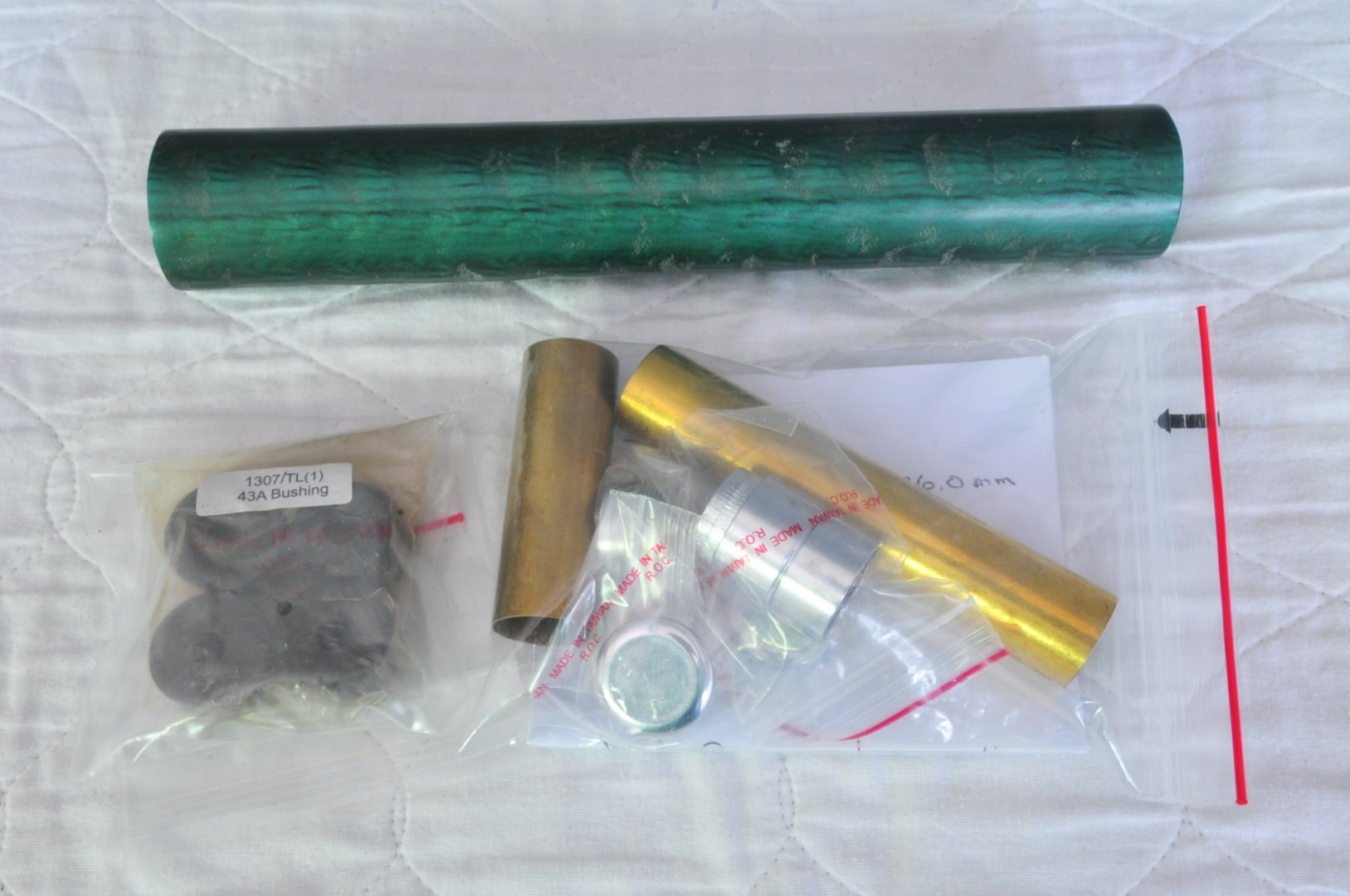 I have a Chrome Rouge Cigar Holder kit (#1307-CHR-1) and the bushings (#43A) plus the instructions. Also have a large piece of Galalith 8 1/2" long x O.D. 34.0 mm / I.D. 19.6 mm green color with pattern.
