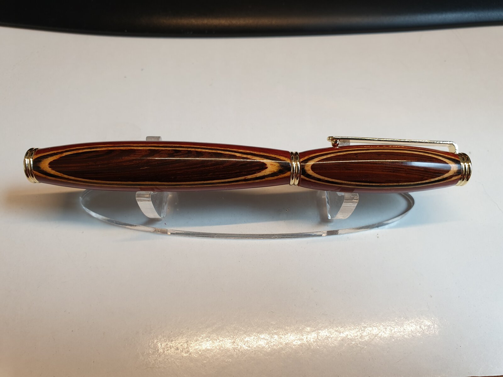 Rollerball penkit RZ-89 from penkits mall. Woods azobe and wenge, veneers wenge and yelloheart Finish CA mm to 12000. Not easy to drill but a nice pen it became.