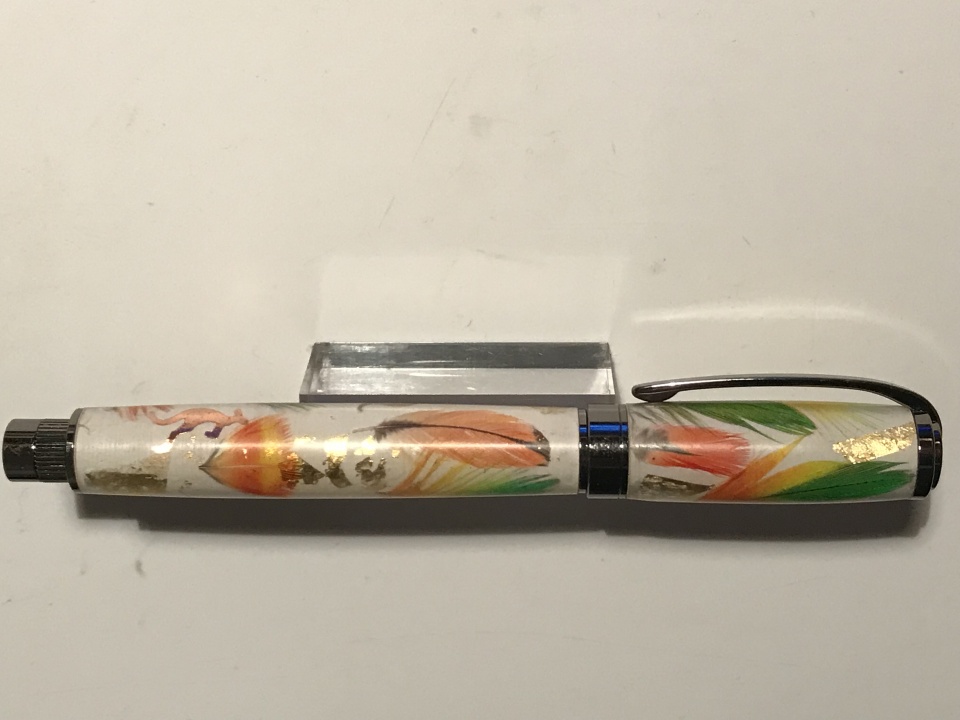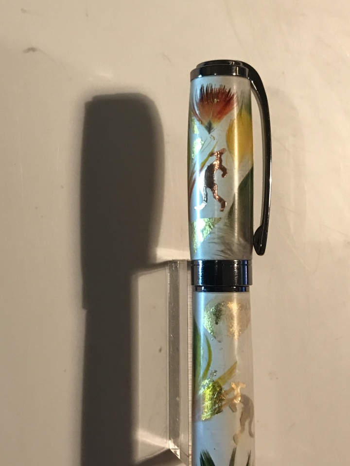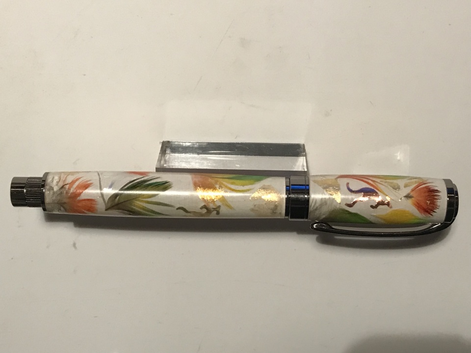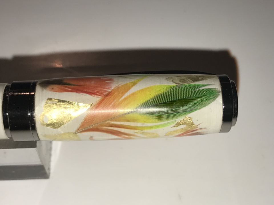 I would like to show you a Graduate Pen made with our Rosella bird feathers and 24 k gold leaf , feather are collected on the ground after they grooming to nice to leave for the wind to blow this out