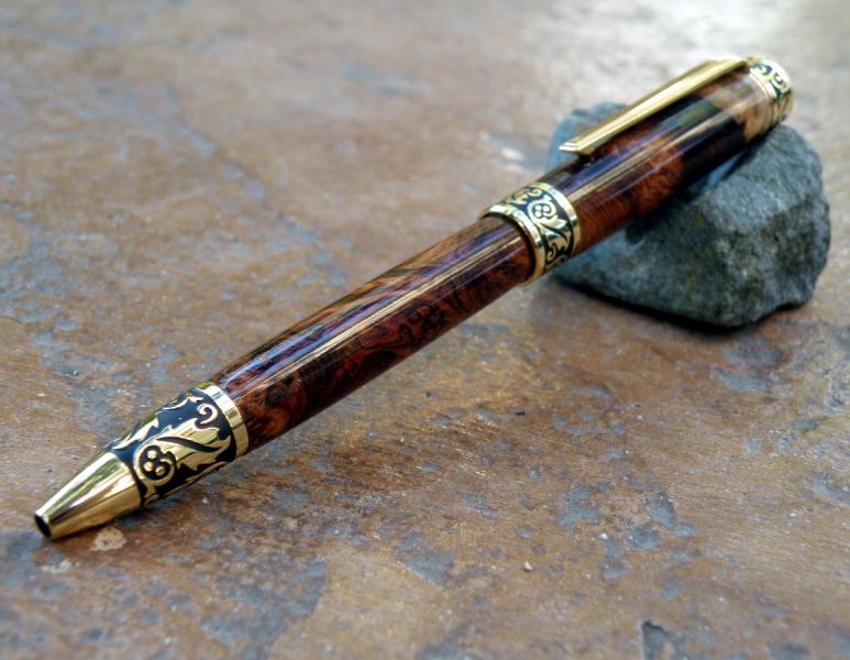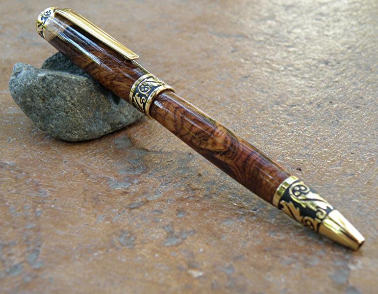 I like the Sculpted pen from PSI. I dressed it in Honduran Rosewood Burl. It only comes in the 24 k finish though. I finished it with 8 coats of thin CA. Anyone know if the epoxy covering they claim on it really helps it last longer?