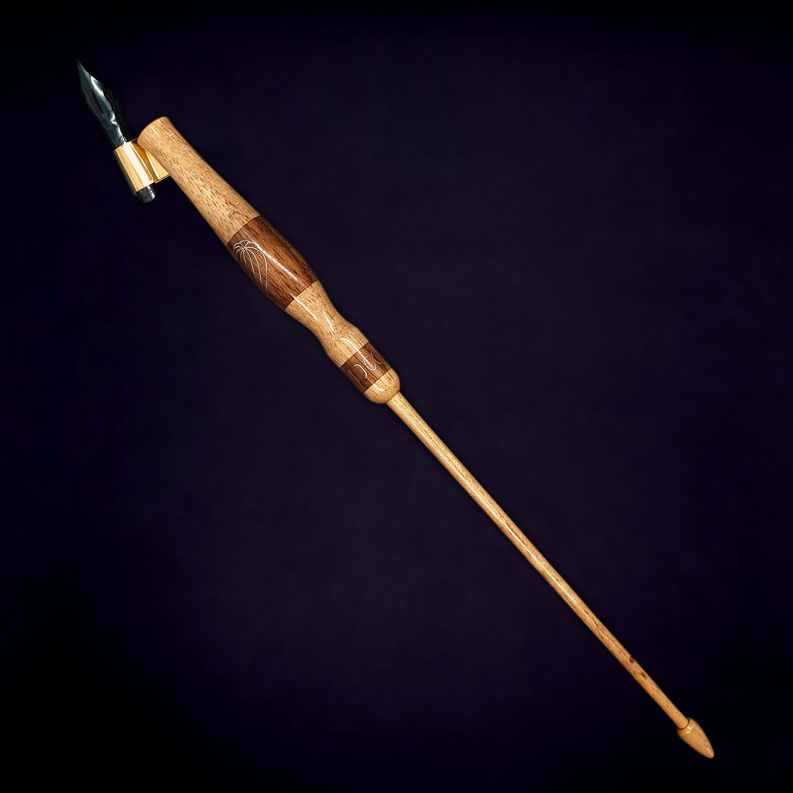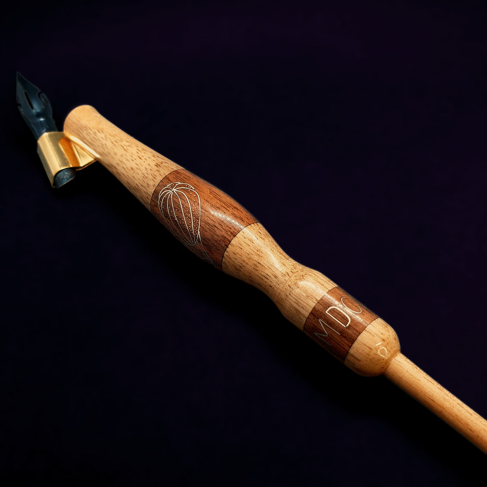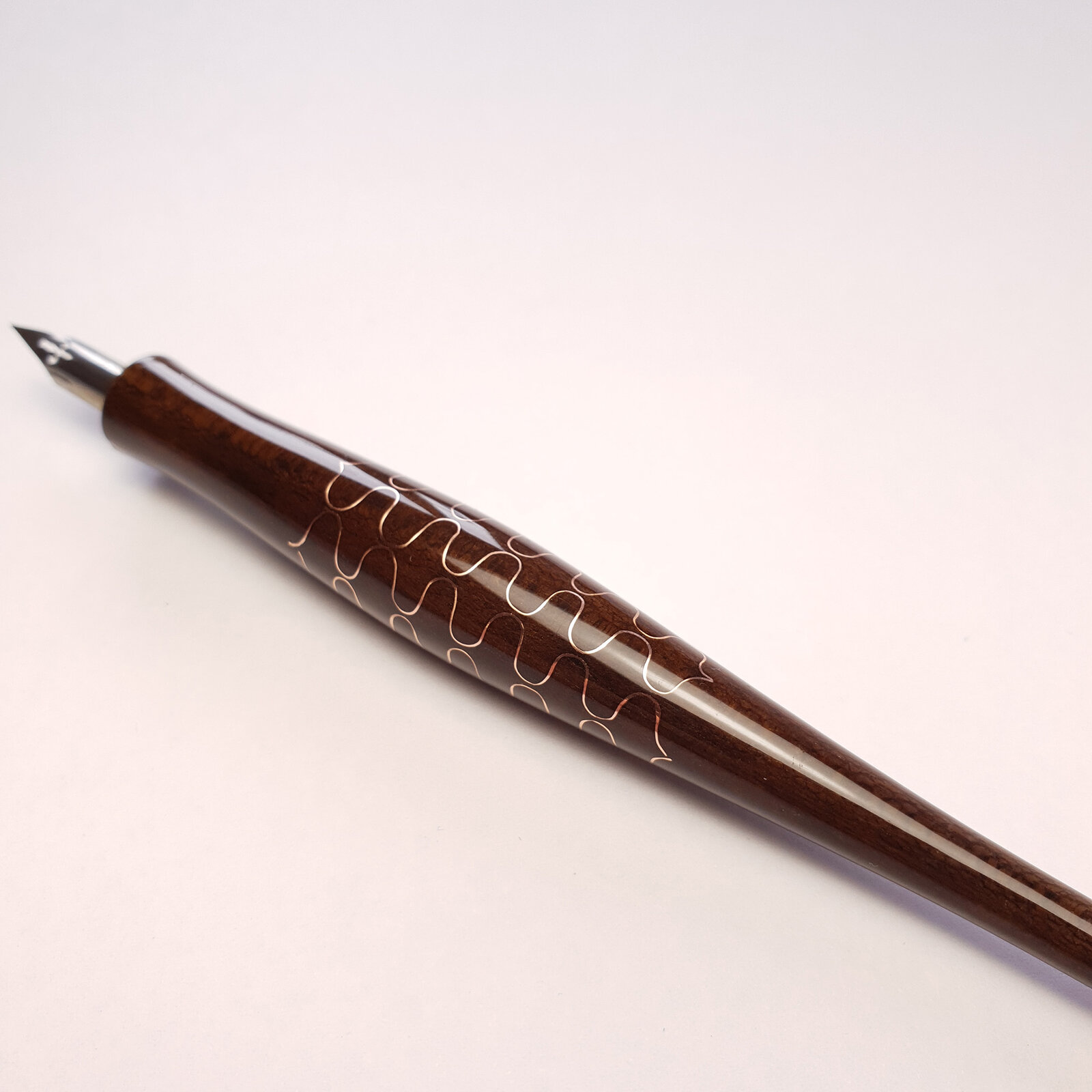 here is a ballpoint pen I made for my brother a few days ago. It was made using rosewood, walnut, and I made a wire inlay around the center ring to make it the highlight of a pen. Kit parts are in gun metal, and the pen was finished with CA glue. What do you think?
