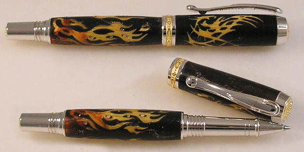 Pictures don't show the effect, but if you want pictures, I posted a pic of 7 pens I made here: