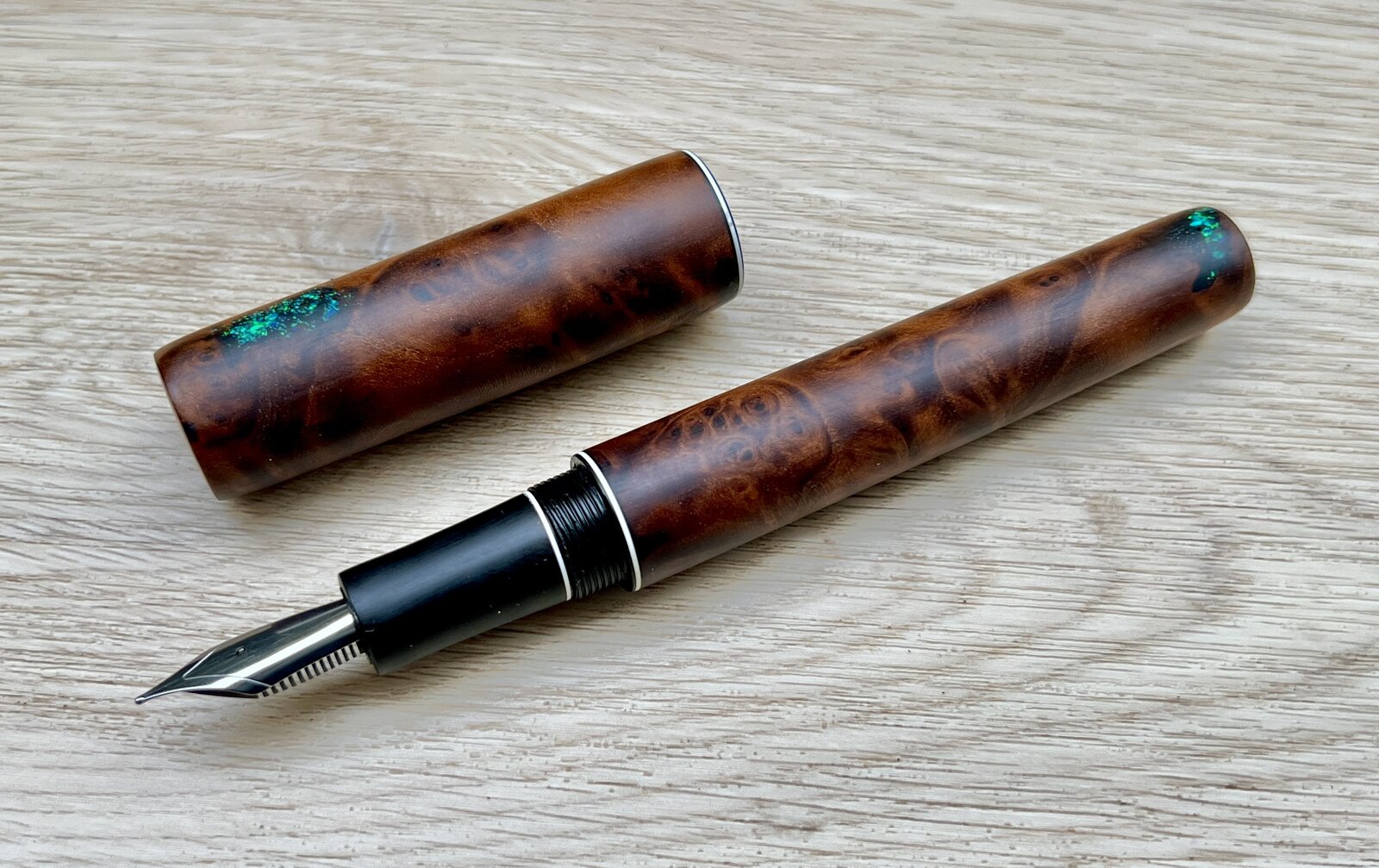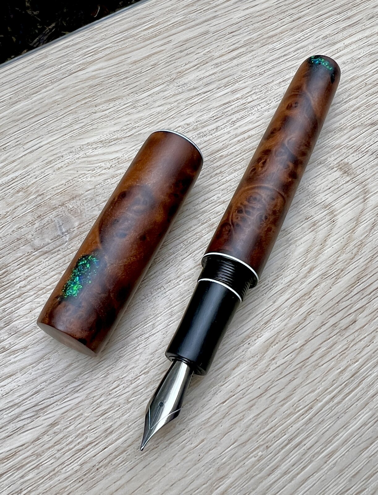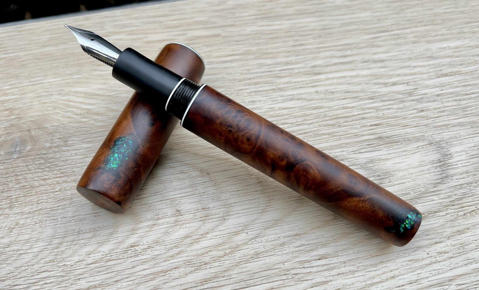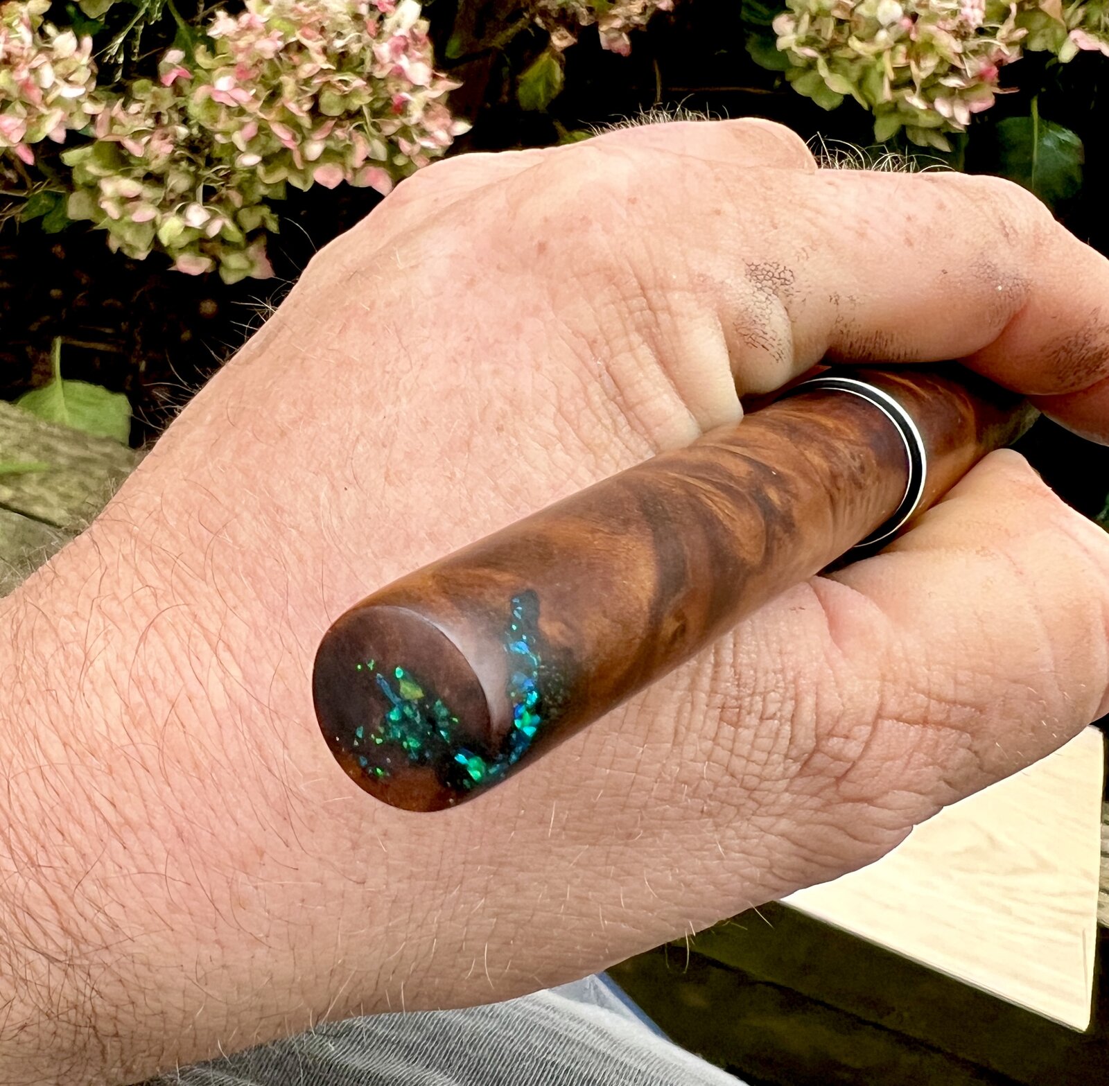 I think it worked out alright! Some synthetic ring inlay opal chips and dust with thin ca built up in layers.