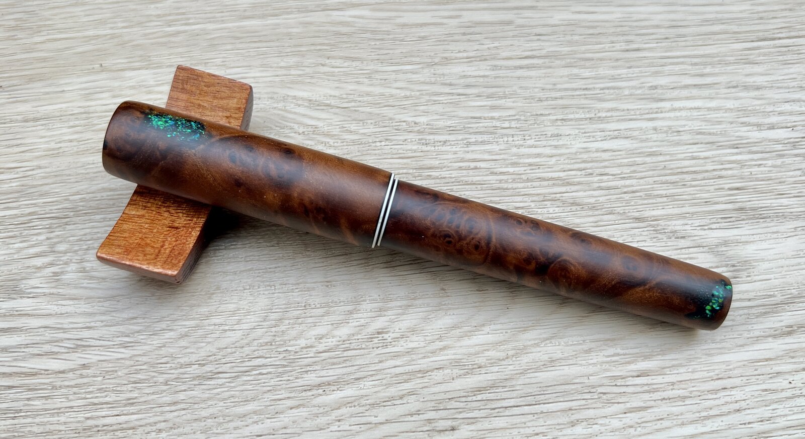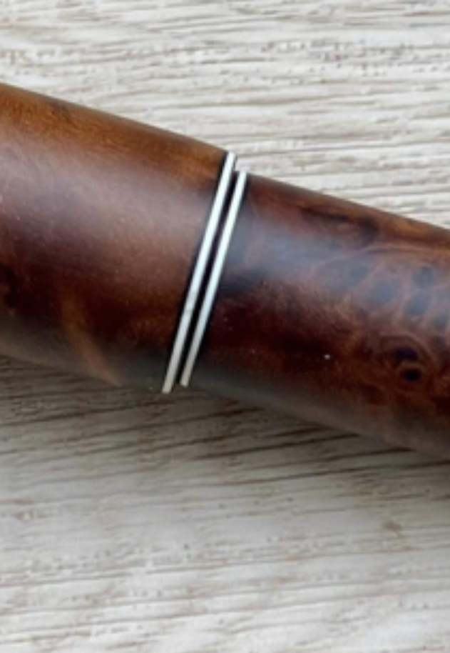 Well, sometimes the timber has other ideas. At nearly finished diameter, I noticed a few notches and chips in the burl. Too nice of a blank to waste, asked the customer if I could do some inlay in them to see if it could be salvaged.