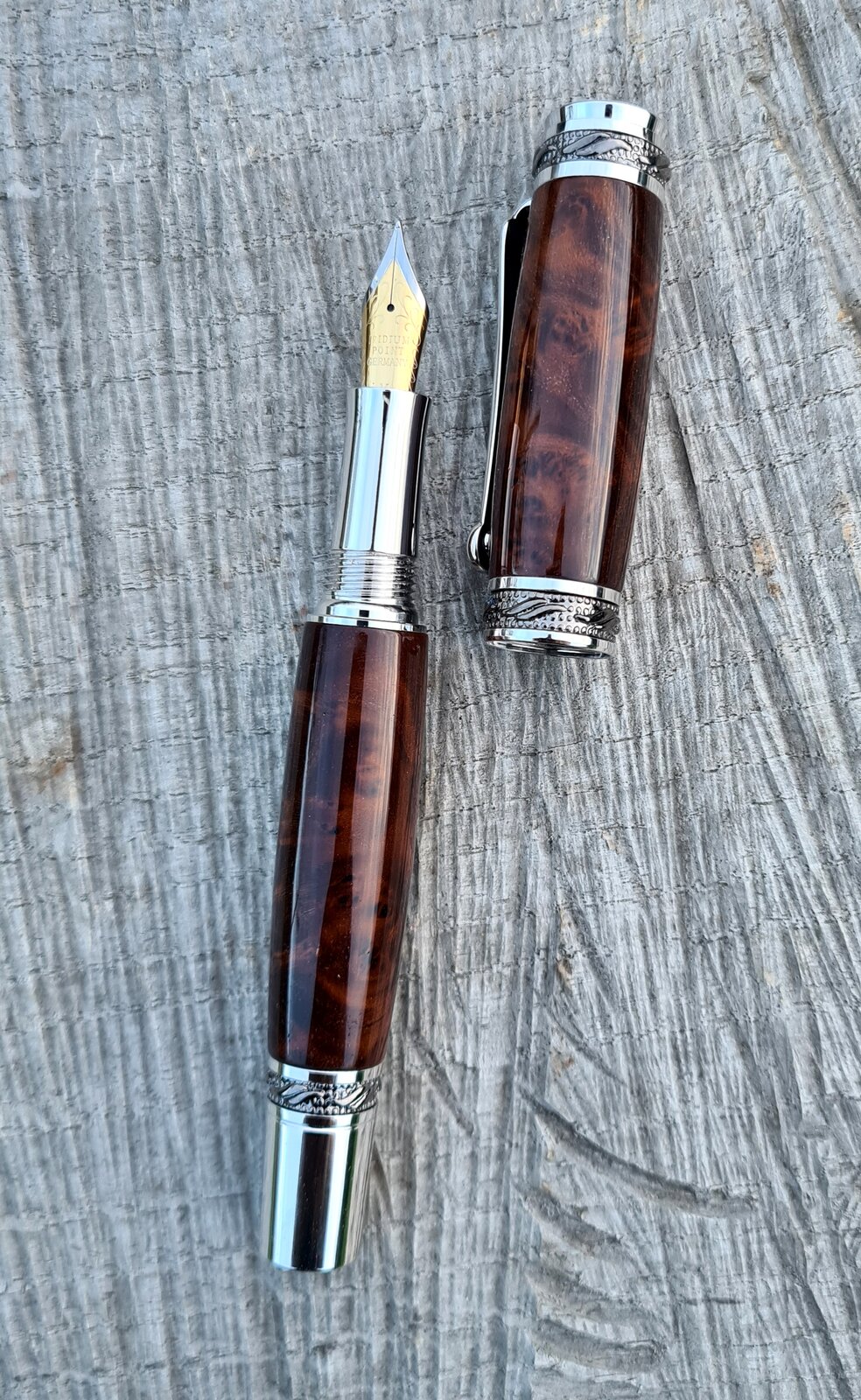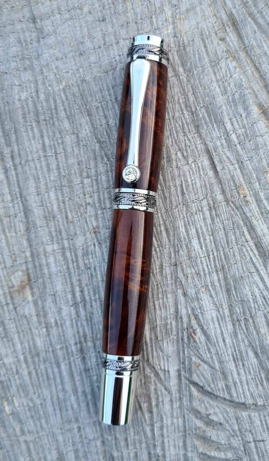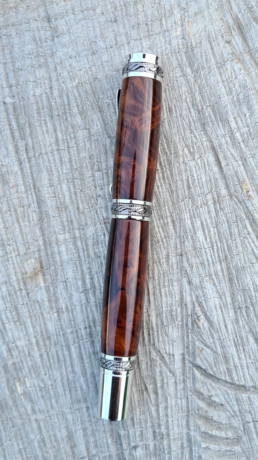 I paired it with some stabilised Russian olive burl, which is tricky to capture the chatoyance and beauty within. Ca finish
