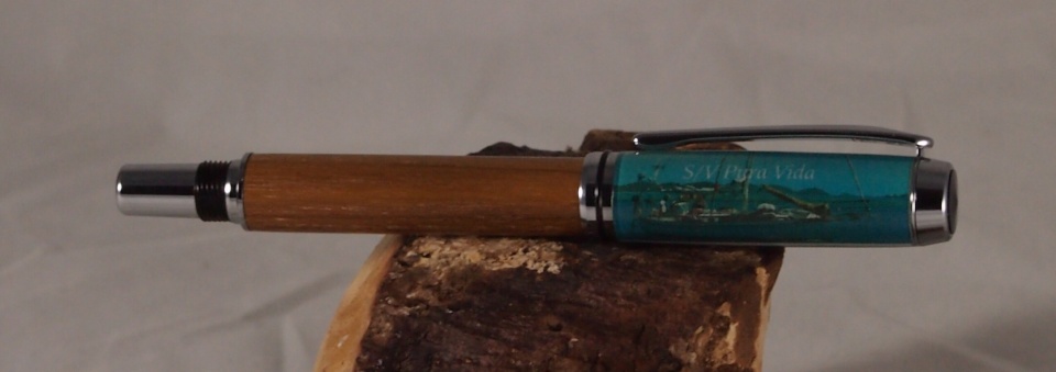 Translates to sailing vessel Pure Life. A co-worker is planning to retire in a couple of months and is planning to sail around the world. This will be his second time. He is refitting his boat and asked me to make a pen with a photo of his boat and teak from the refitting. This is the best photo that he could give me. Wish I had a photo of the boat under sail.