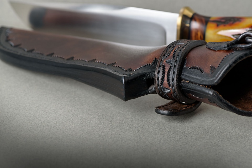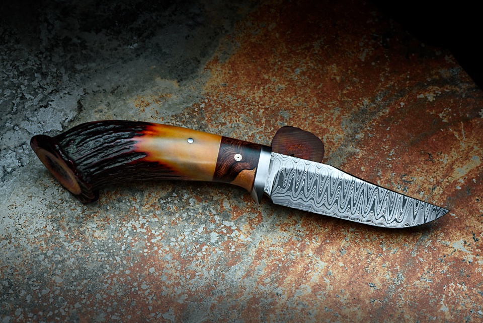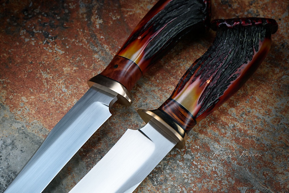 A couple of Bowie's. The horn is sambar. Stainless steel blade. My brother makes my sheaths. Would love to find a small enough sambar to make a pen.