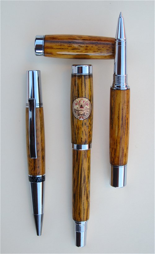 I made these three pens from wooden hickory ladder rungs from the San Francisco Fire Department (SFFD). The ladders these pens were made from started out 100 years ago as 50 foot extension ladders.