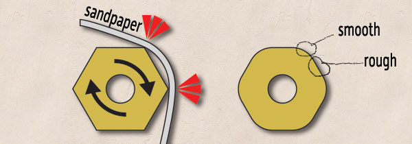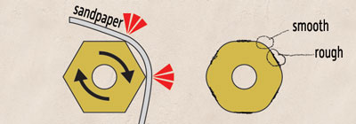 Note: think through which direction the drum will spin before wrapping sandpaper.