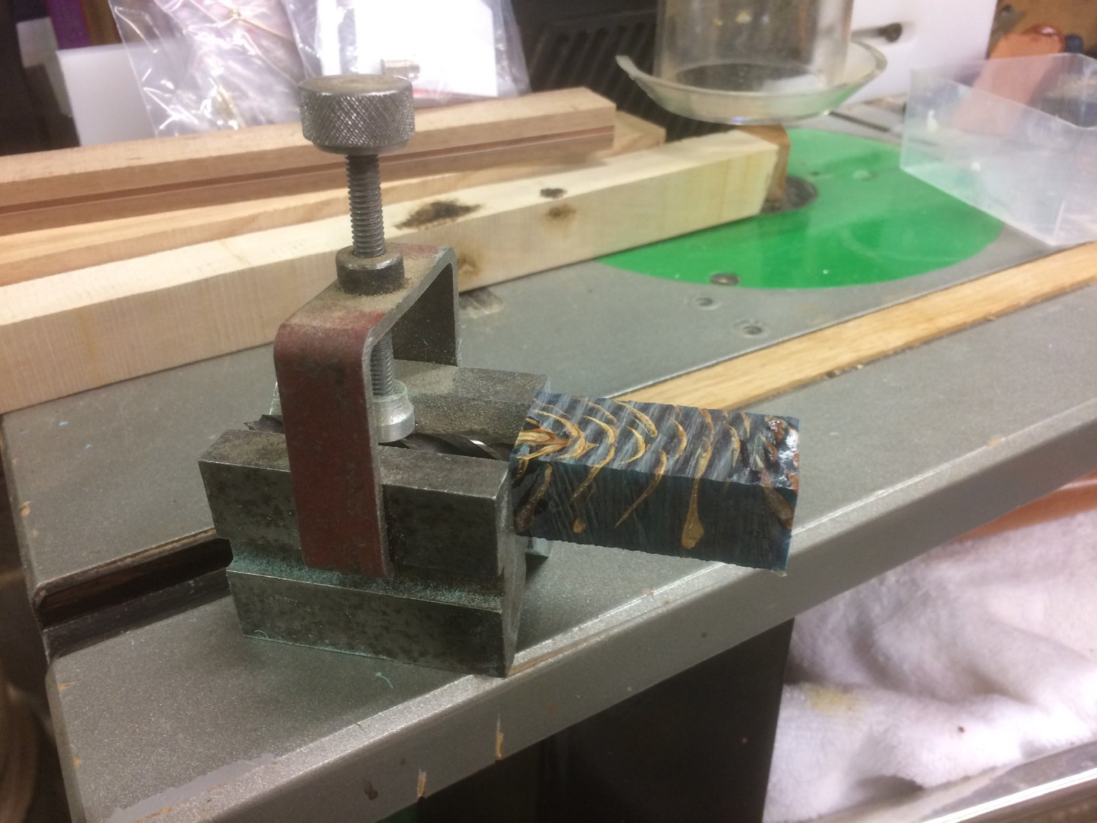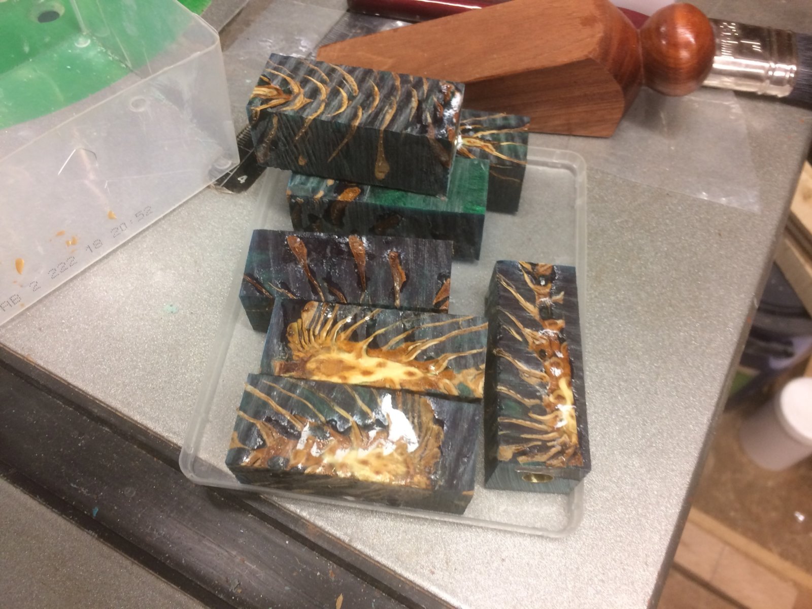Well hav8ng finally made and cut up some aluminite and pine cone blanks I needed to square the ends. Normally I use a razor sharp,counterbore but the contrast in density between the hard resin and soft cone material was a bit too much so , after applying CA/to the chipped out aare I decided t9 follow advice on here and sand the tube ends.