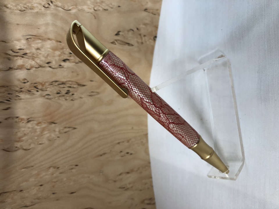 Super Dave said: It's called Red Oriental Fabric from Penn State Industries, I don't think they carry it anymore. It almost looks like snake skin . Dave Click to expand... Thanks, I thought it looked a lot like snake skin too. Awesome pen!
