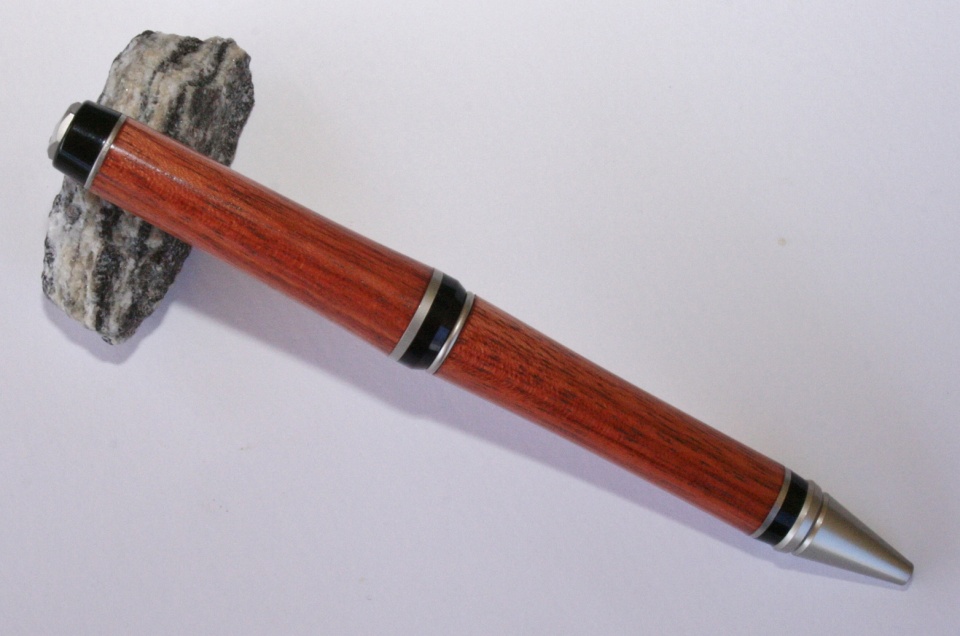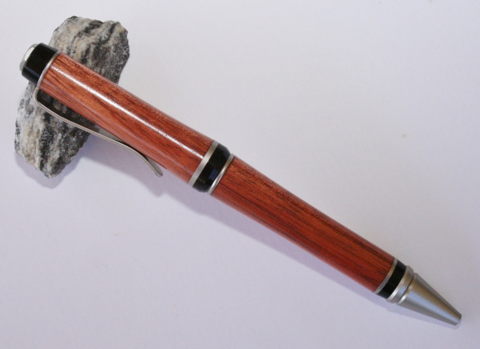 I ordered some beautiful Bloodwood blanks from Patterson Grant on Pen Turning. This is the first time I've turned Bloodwood. I think it turns, sands and finishes really nice. The kits is a Woodcraft Satin Nickel Premier Cigar. I had Evelyn match the kit plating to the blank. I sanded the blank to 12000 mm and finished with 20 coats of WFT. All C & C are welcome.