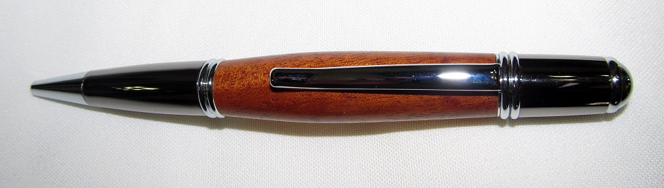 Started this during the week using the CA/BLO technique (I have just used CA on it's own before). Found a lovely piece of Mahogany but coming on to the end of the turning process - plick!! and out flew a piece of the edge near the bushing. Luckily I found it and tried to fix the piece but no joy.
