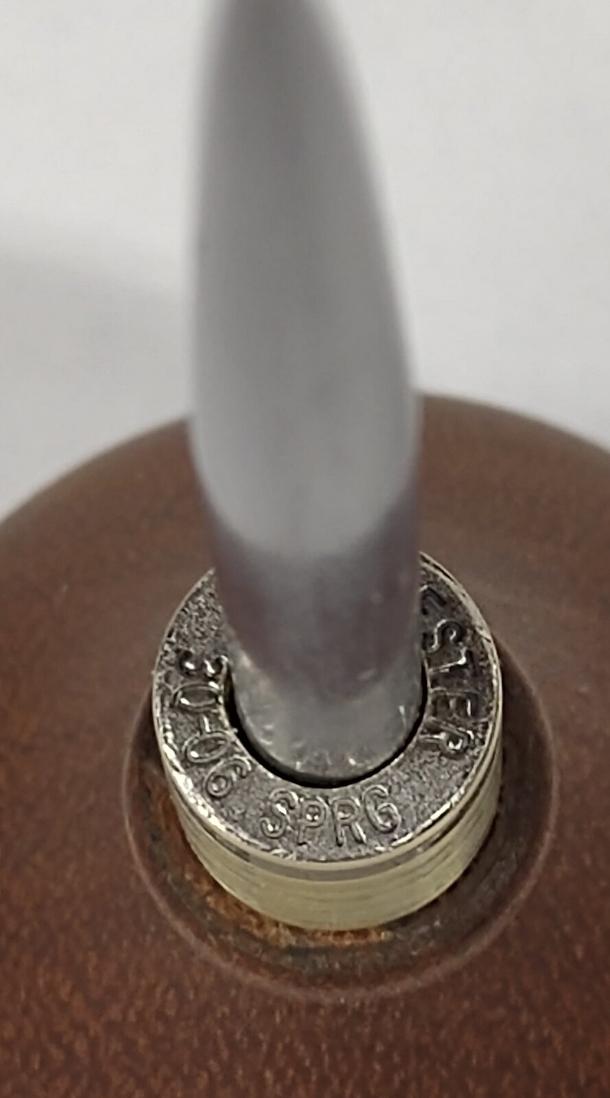 My version of a scratch awl for a challenge by the ASWT club. The wood is Makore and the material for the metal part was a 1/4" hex head bolt. I counter sunk the hex head into the wood so the Awl could be hit with a hammer to be used as a punch also. The ferrule was made from the cap end of a 30-06 shell casing. I friction polished the handle with the wood shavings for my finish.