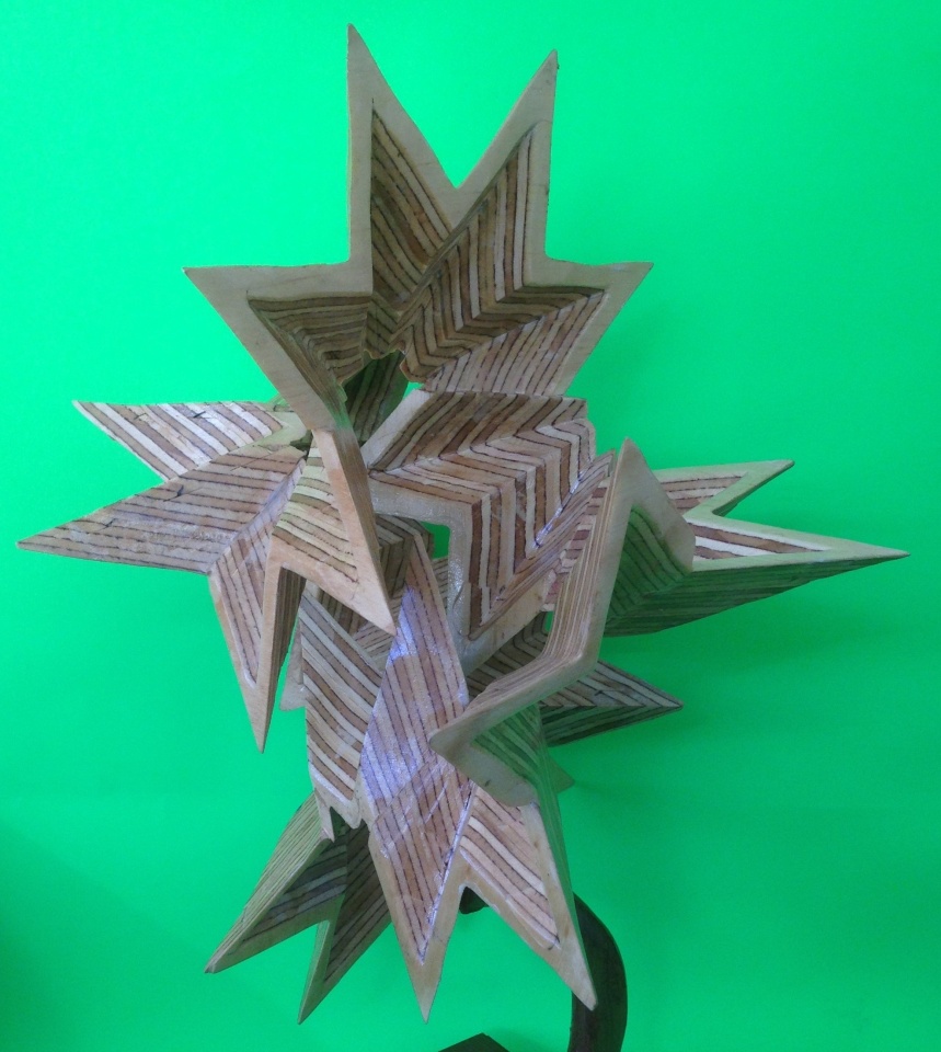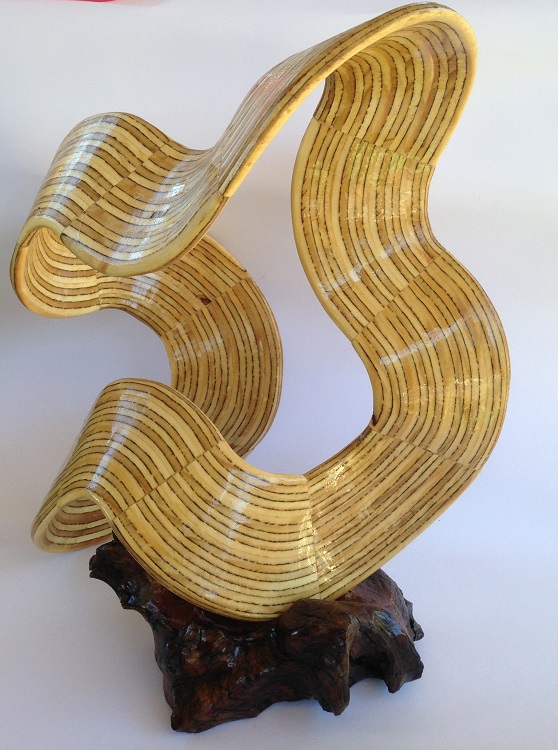 A Mobius Ribbon made from plywood and cut on the scrollsaw using a bowl from a board method and consists of 2 half and 10 quarter bowls.