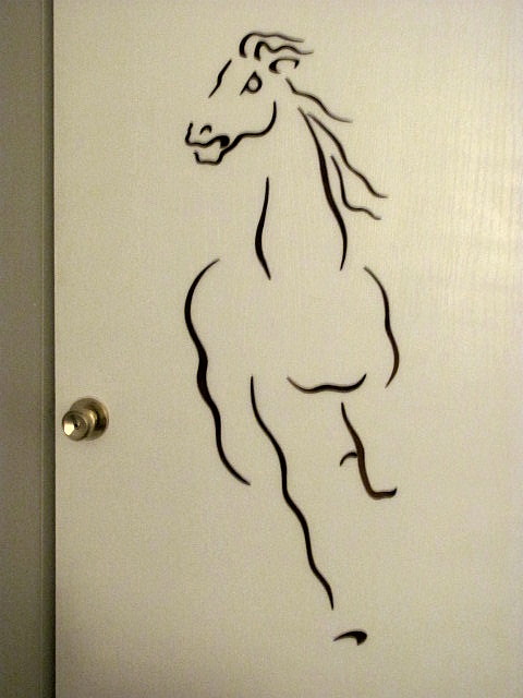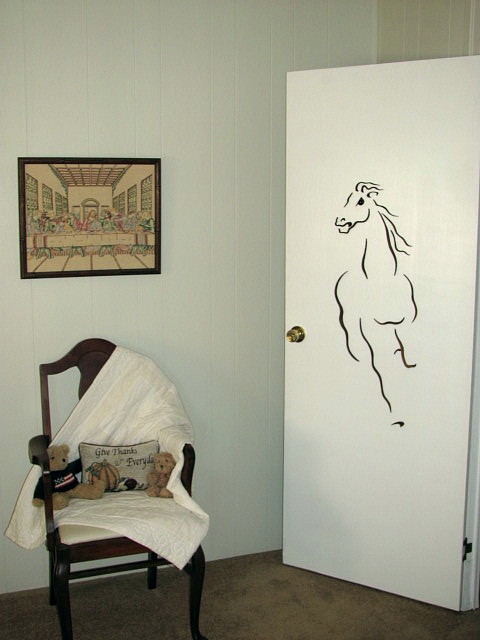 When I was a teenager,I had painted my bedroom door white,and it seemed fitting to paint the horse from my favorite album at the time,"Legend",by the country rock band Poco.