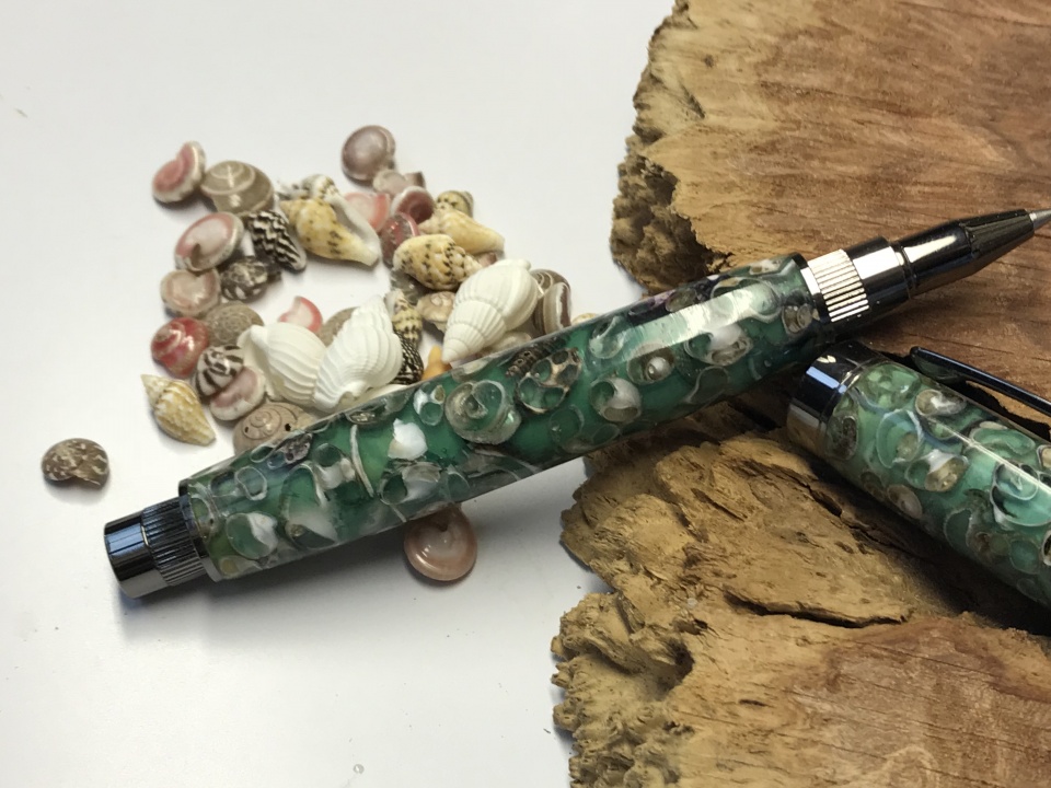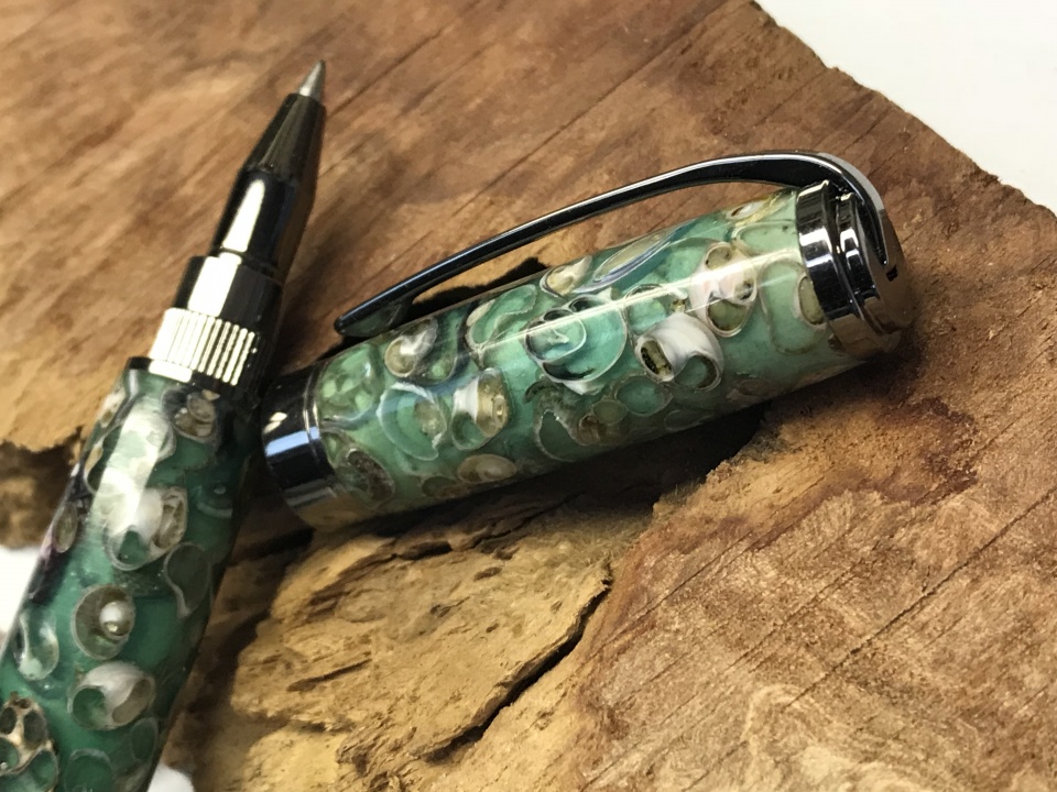 At last I finished this Sea Shells pen in Gun Metal Graduate, as been 3 months I start this pen and working on it about 2 hours every weeks as work is busy and a lots of Shells holes to fill with CA , but good things take time and I'm quit happy with the result .