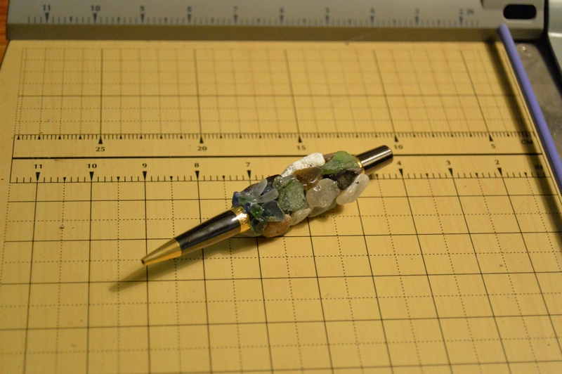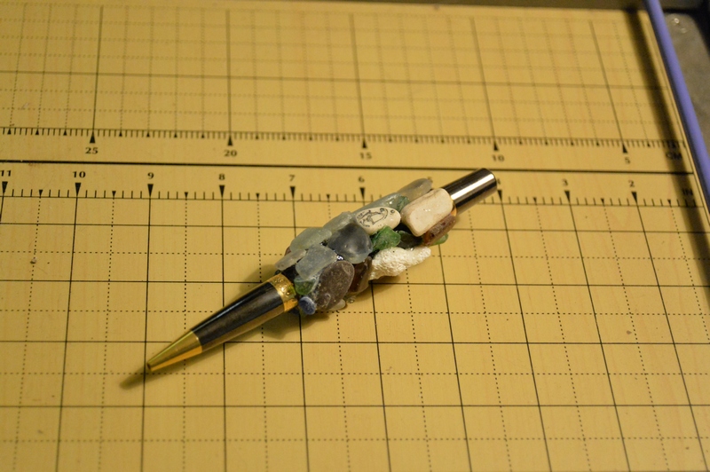 i took the the sleeve add ca coat with black sand then used ca and sea glass