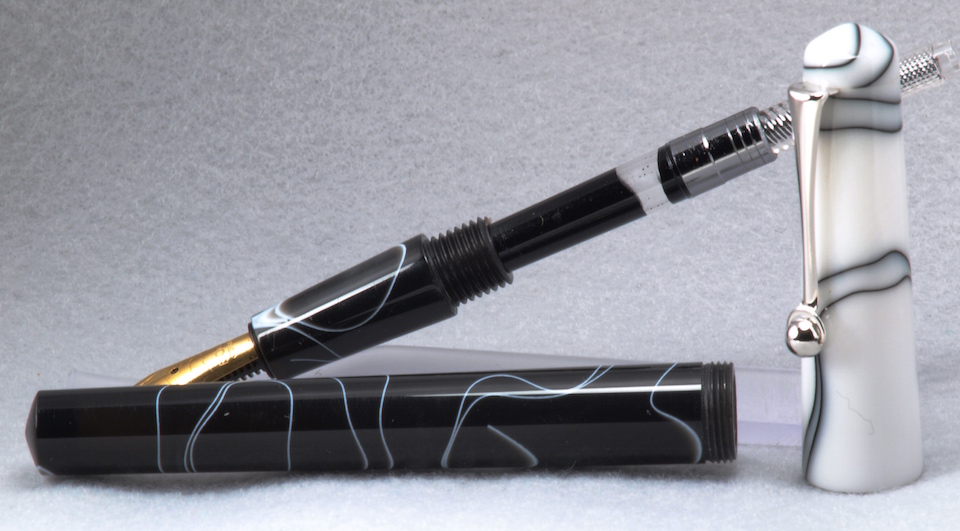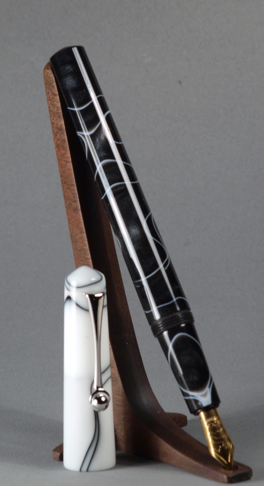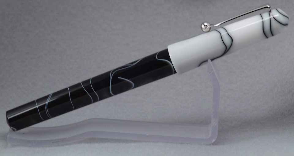 This was my Summer Extraganza submission except the photos were so small it was hard to see anything. The blanks are black and white acrylics with a Bock #5 nib. It was my first hidden clip.
