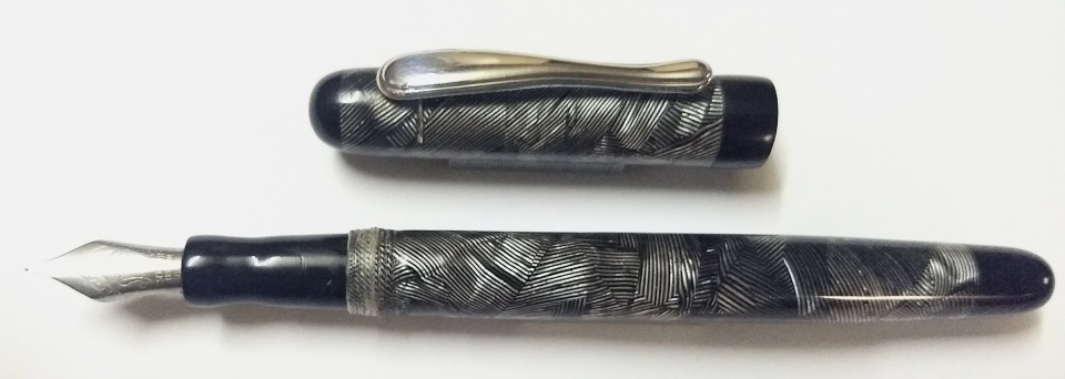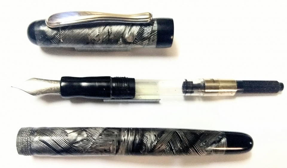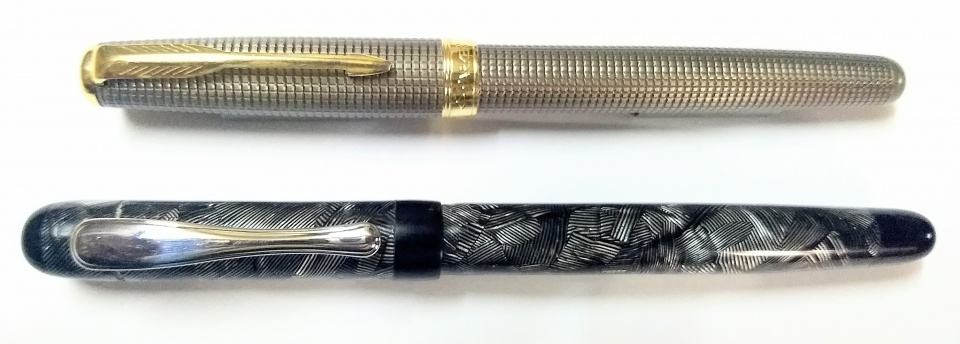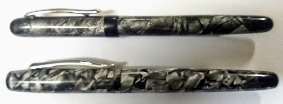 Finally completed this slim pen in 1930s vintage celluloid. Fitted a Schmidt size 5 nib unit and a K5 converter. Clip fitment is through a slit on the cap, I still haven't mastered the technique flawlessly. The last two photos compare the pen with a Sonnet for size and with the first celluloid pen I had made.