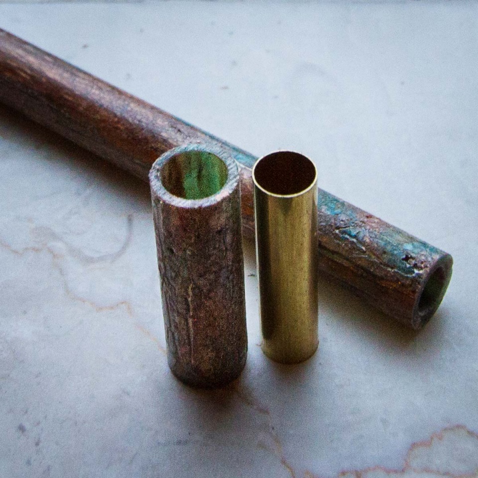 I was orderings some glue last week and noticed Copper plated Sedona's on sale, so grabbed a couple in a moment of weakness. Hmm... need a blank for a copper Sedona... I had hadn't done any resin pens lately, so thought I'd try to match it with one of some experimental Alumilite pours I had a done a few months back. I liked the one in the first photo, but these were only 15.5mm wide rounds (and the Sedona cap needs a 12mm hole)... ah what the heck, I'll give it ago as a skill builder. Gotta love Alumililte - the blank drilled just fine, and not much turning needed on that cap
