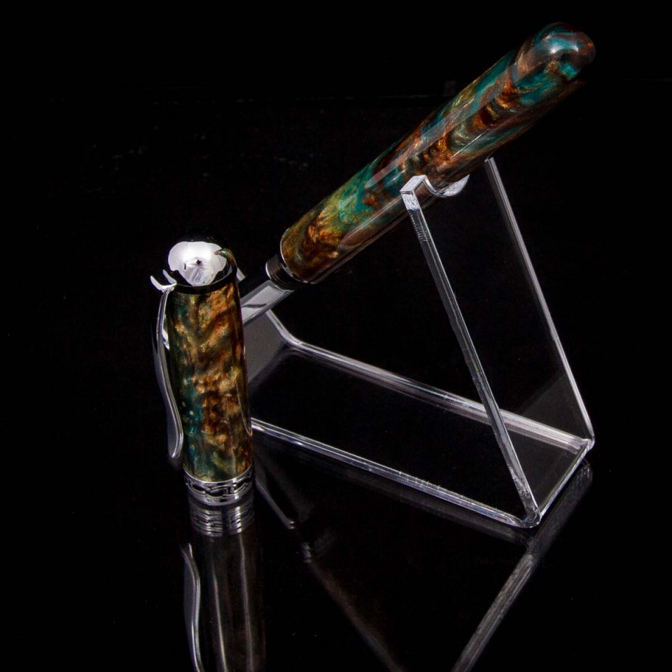 When I did get the thing turned and polished, the colors inside the blank just didn't seem to mesh with the copper plating like I thought they would. So I went with a chrome Sedona instead. So I failed in my original motivation of this journey to use that copper plated one...