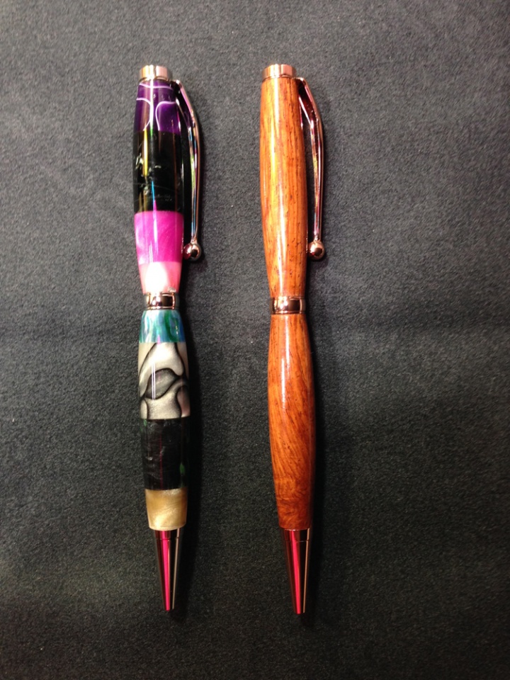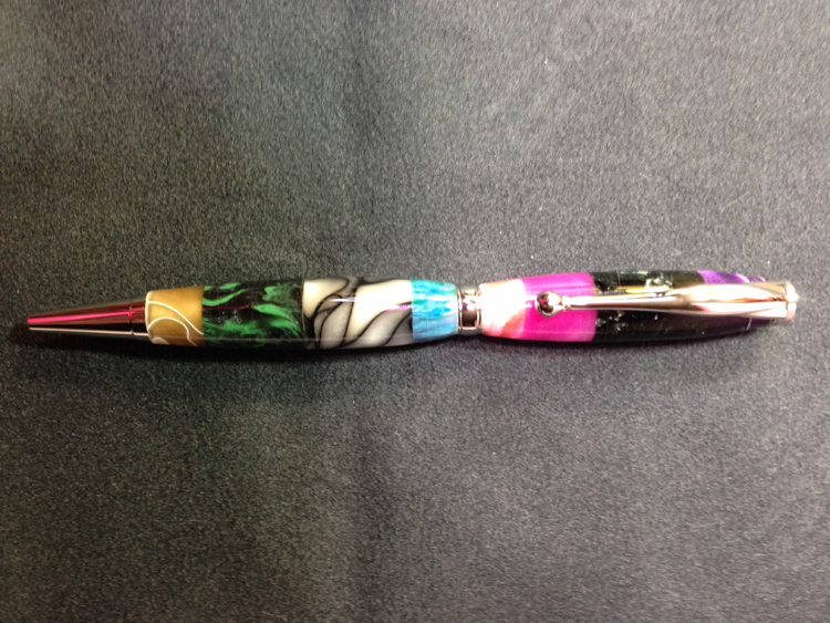 I was looking at the scraps from the acrylic blanks that I have used to make pens. I remembered seeing and reading about various segmented wooden pens and thought, what the heck. So, I glued up the scraps, drilled them, turned them and made a pen. Honestly, I didn't think that it would survive drilling much less turning but to my surprise and delight, it did. Thought it turned out to be kind of cool.