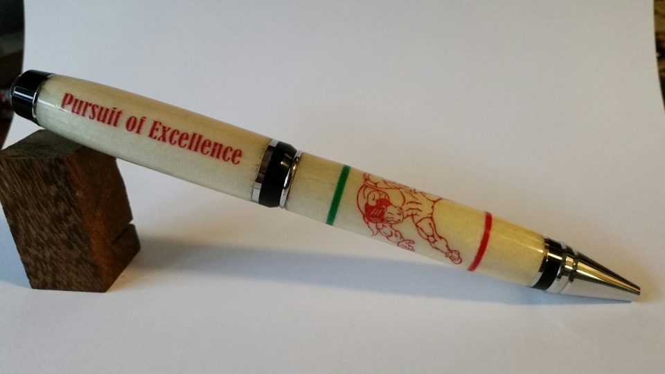 The decal "Pursuit of Excellence" is the teams motto this year.
