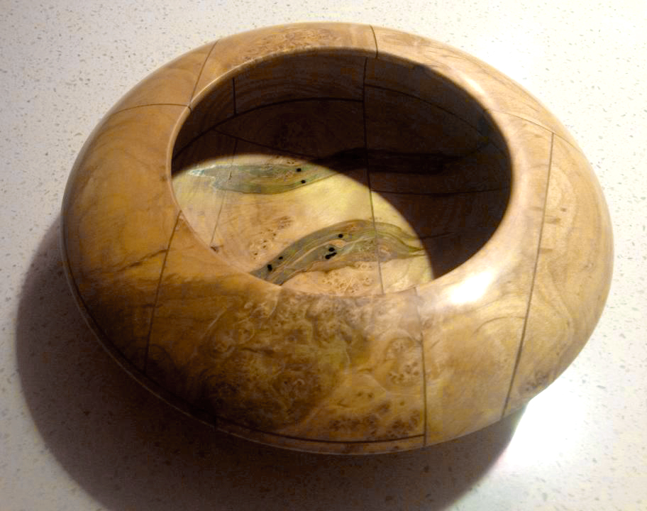 This is my twist on a "segmented" bowl. It is ambrosia maple and walnut. About 9"x3.5".