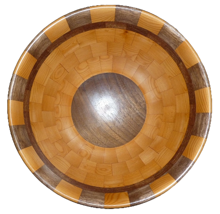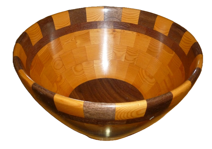 When not making pens I occasionally make segmented bowls. A generous friend gave me a big piece of pacific yew. Even though it is abundant along the coast where I live it is not usually available for purchase. I have used it on pens, some of which are posted on IAP, and now on a bowl together with walnut and a 3rd wood, which I can't identify (second row from the top). The pacific yew turns and finishes very nicely. I really like the "orange" color, which contrasts well with the walnut. I used a friction polish for the finish.