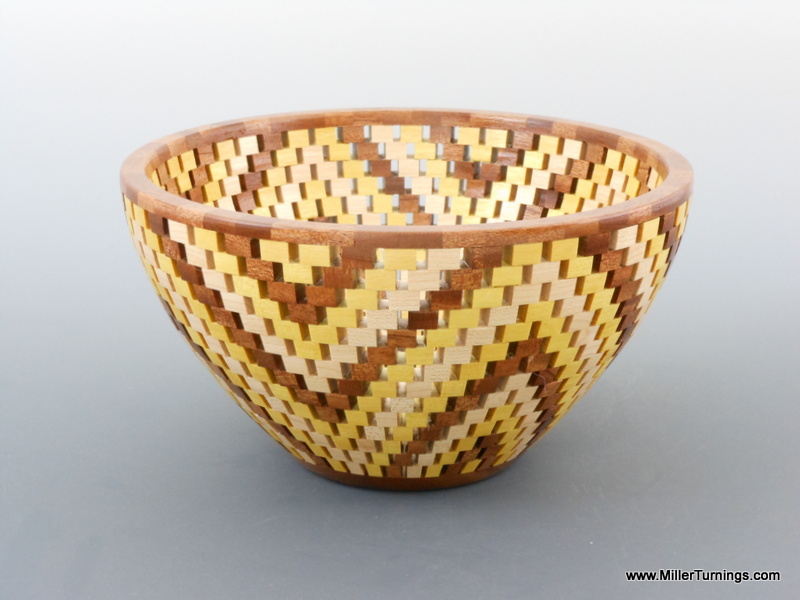 Just had time to squeeze in two bowls for Christmas. The first uses maple, lyptus, and bocote to make a 12" bowl. The open segmented bowl has 721 pieces of maple, yellowheart, and mahogany for a 6" diameter bowl. All comments and critiques are welcome.
