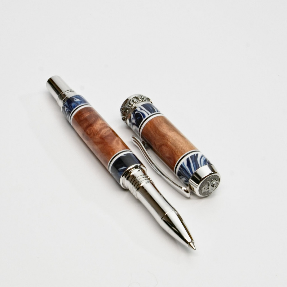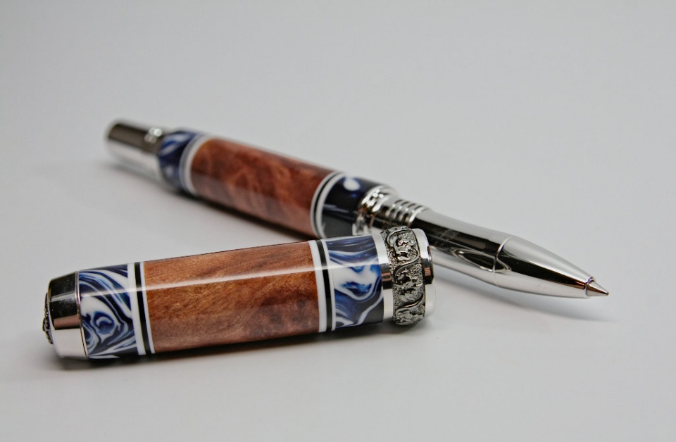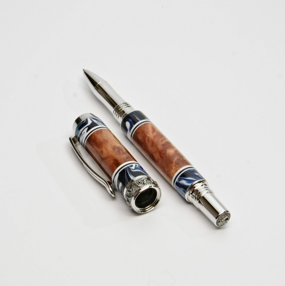This is a Jr. Aaron in rhodium and black titanium. This is my first go with this kit and it really just turns and assembles just like any other Jr. series kit. A little more attention seems to have been paid to the castings as they are pretty clean and the nose cone has a slight concave shape which sets it apart from the other Jr. kits. Bottom line is they seem to be worth the selling price from what I can tell. The only thing I didn't understand was that they claim to be a slip fit on the components but they were definitely press fit.
