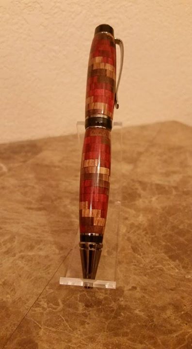 Rolandranch Member Joined Jun 18, 2015 Messages 1,053 Location Tucson, AZ Jun 21, 2015 #1 Cigar pen made today made from walnut, redheart, and hickory.