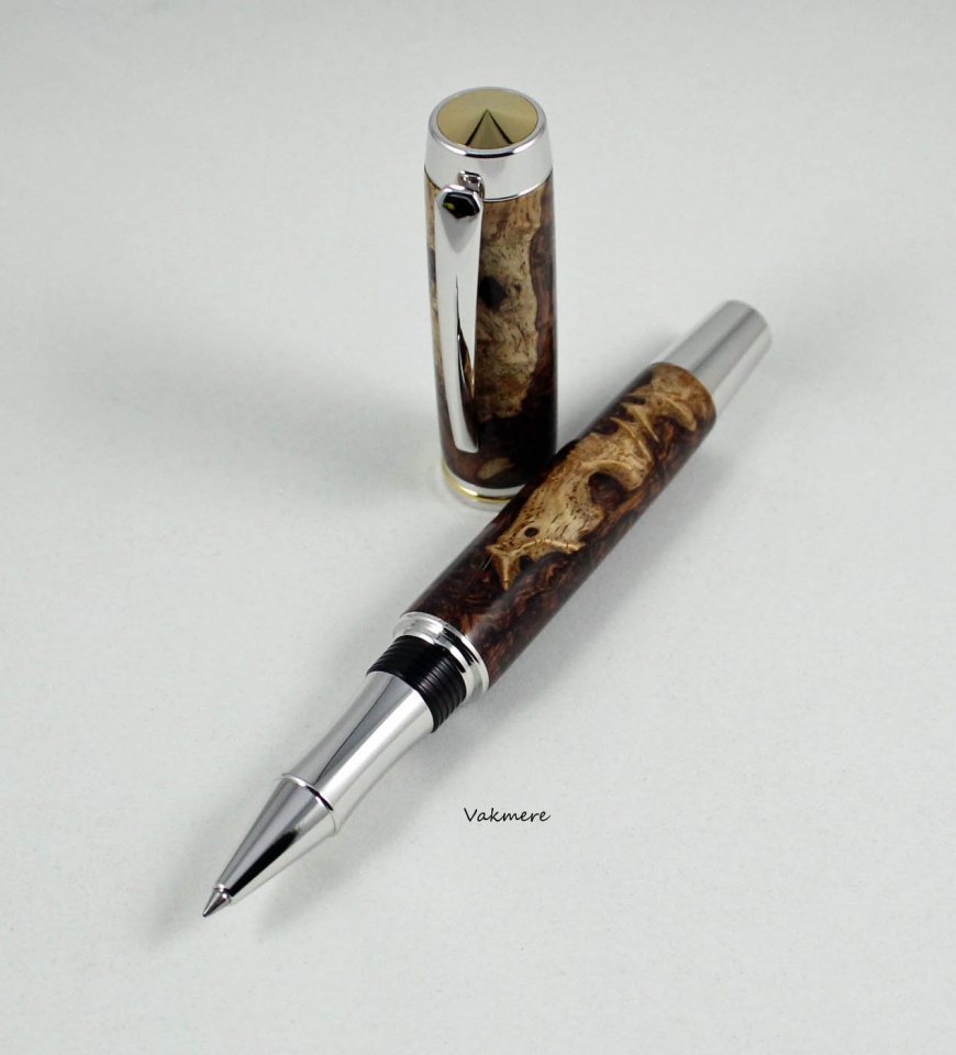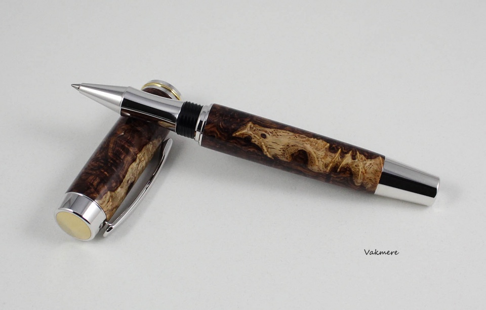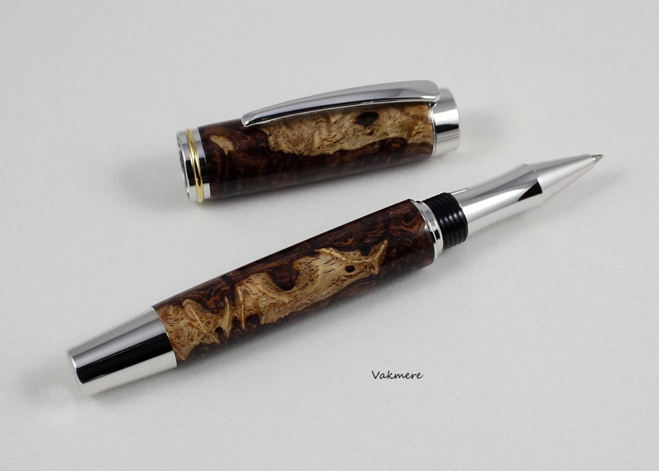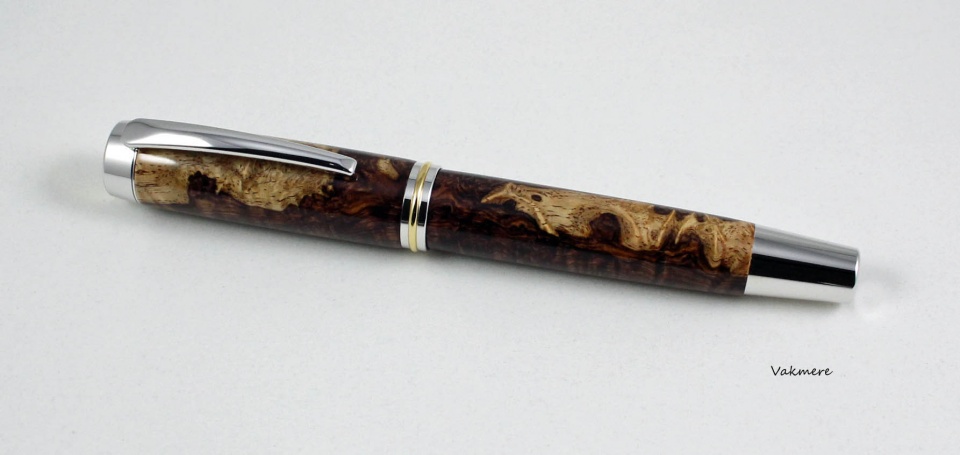 After doing the Jr. Gents I wanted to try the full size. This is nasty big and was a bit of a challenge. After receiving a nice Burl box from Lou and Roy back in May this Rosewood Burl had no home until now. Fairly dense and nicely figured this looks better in person. The finish started with BLO/CA and then several more CA applications. Was in no hurry to complete it. Did the best I could with the photos. Perhaps the FP version of this next and another one from the burl box. Not to sure about using the Ti Gold. Oh decisions - decisions.... Enjoy