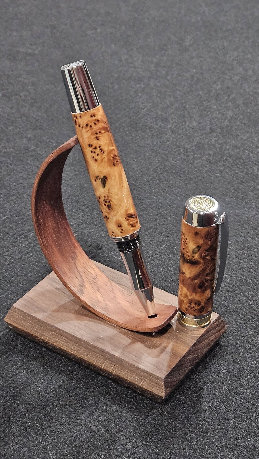 My 15th pen. And 1st large Gentleman's pen kit using a thuya burl blank. It turned out well. I just need to touch up the lower tube near the lower assembly cap as the wood is a bit proud. It still looks good and feels good in my hand
