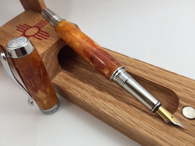 I received my pen and blanks from Edward R. Cypher. The pen is beautiful, and the casting has a 3D effect that the photographs don't capture very well. Orange is the perfect color.