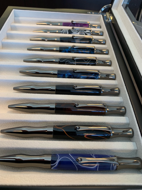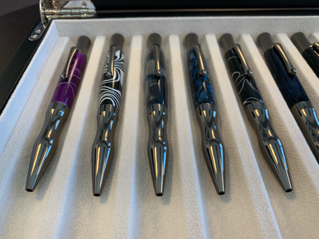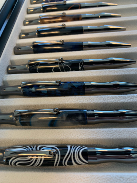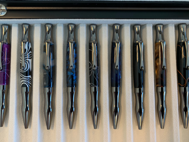 In 2019 I decided to start making 10 identical pens in series. This allows me to experiment with different elements of the same pen and I've really been enjoying the process. It's teaching me a lot about overall pen design and how little shape changes modify the whole appearance. Today I finished my second series of 10.