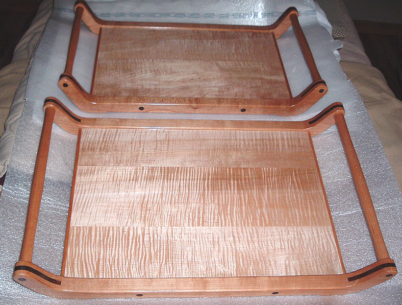 You may wonder why the walnut slice is in the end of the handles. I wanted to strengthen that area since the grain of the cherry would be apt to break. I made the walnut grain go across the cherry.