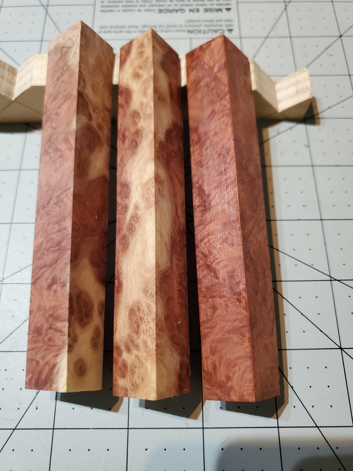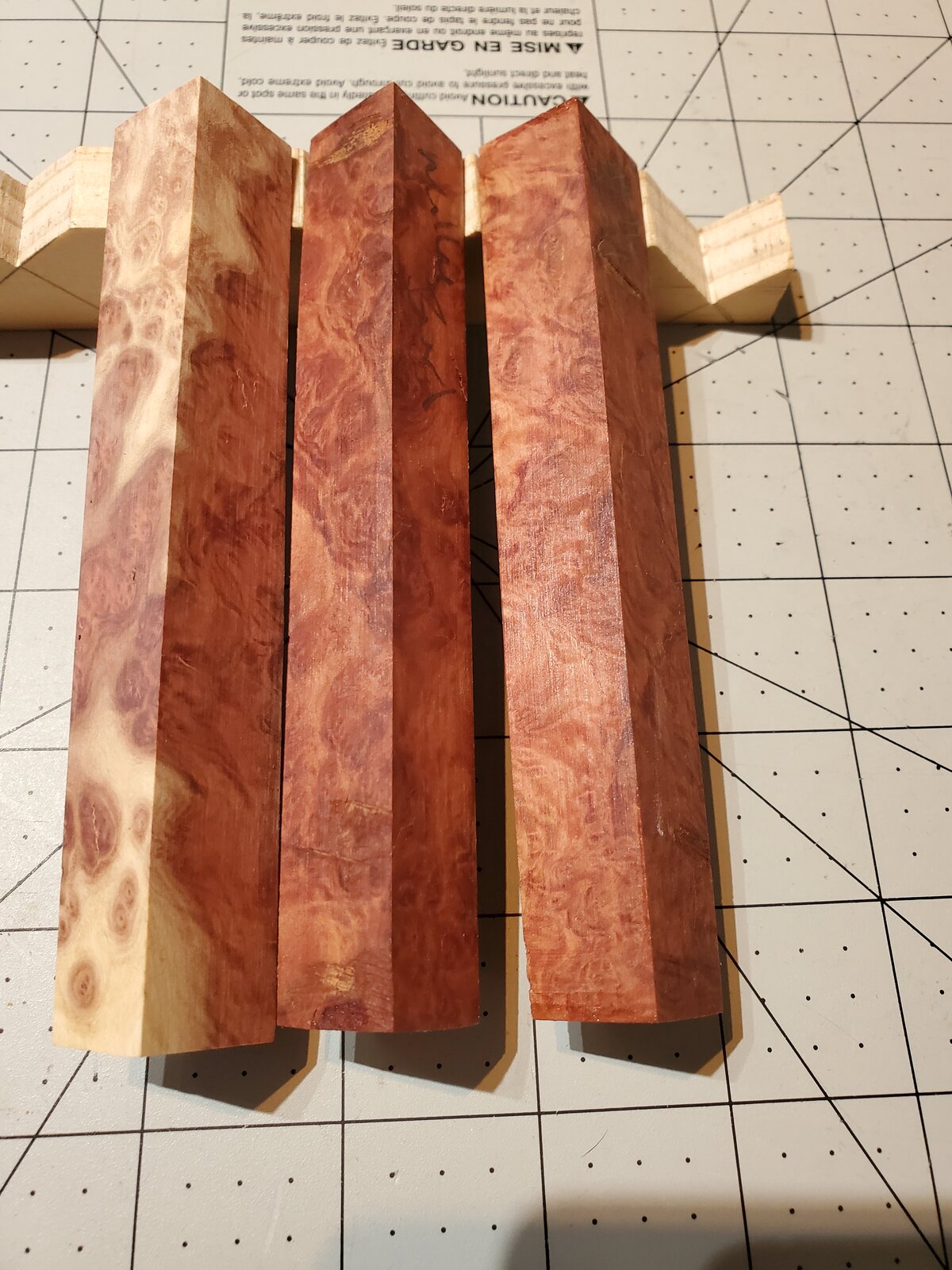 Lot 7: 3 stabilized curly redwood - $9