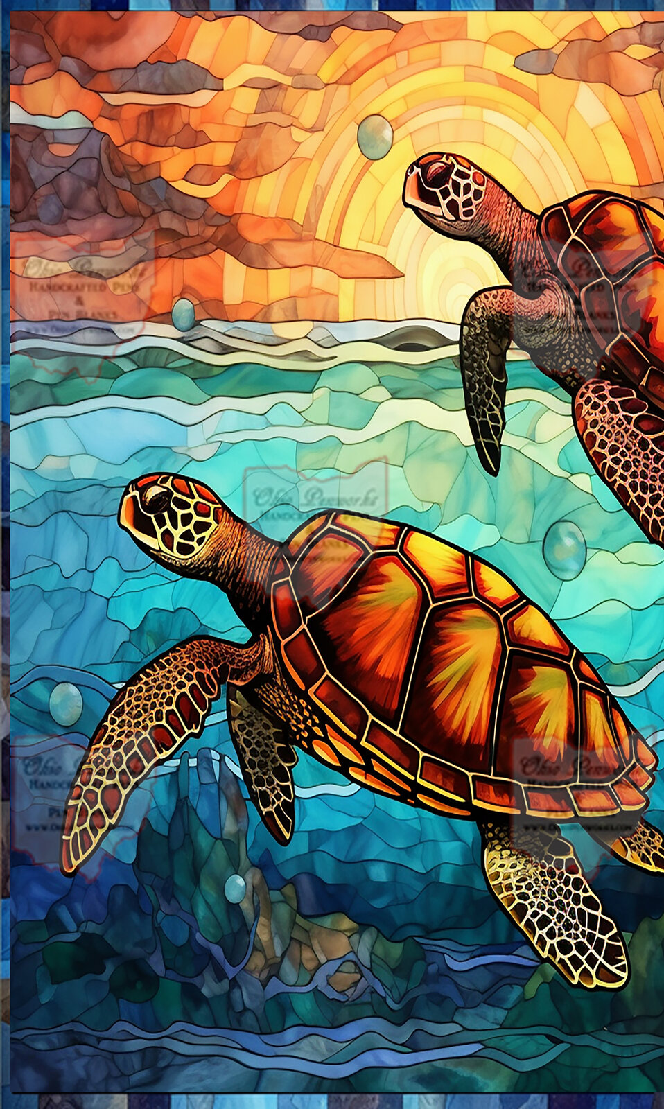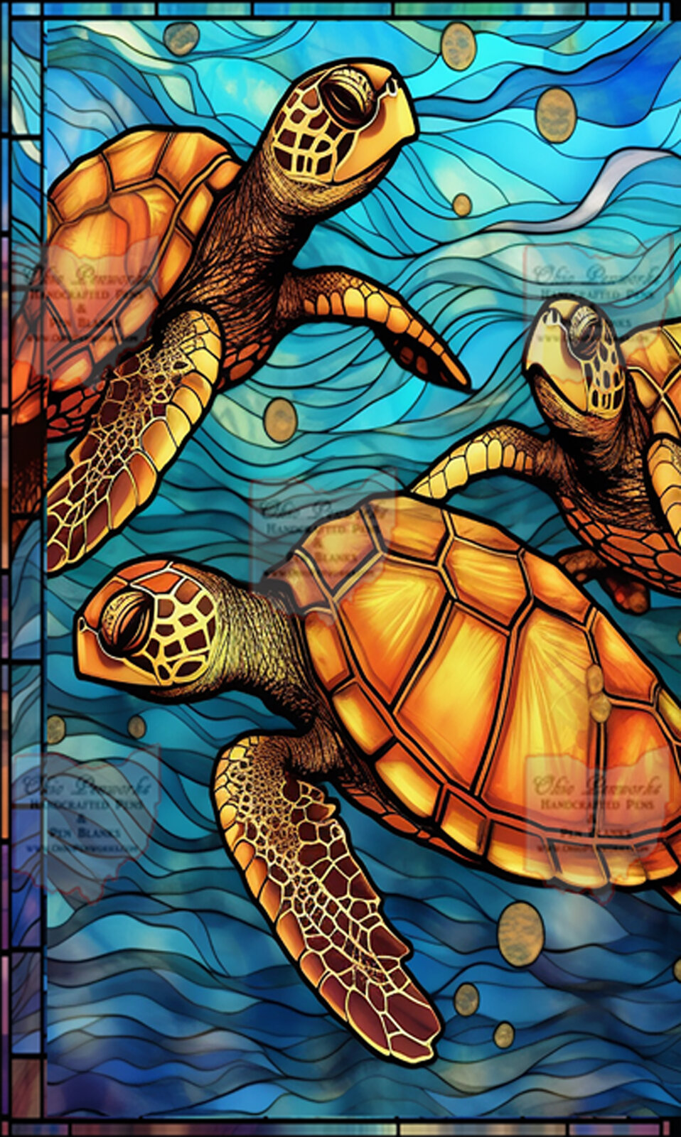 Handcrafted Stained Glass Design Alumilite Pen Blank Two Sea Turtles Theme - Etsy